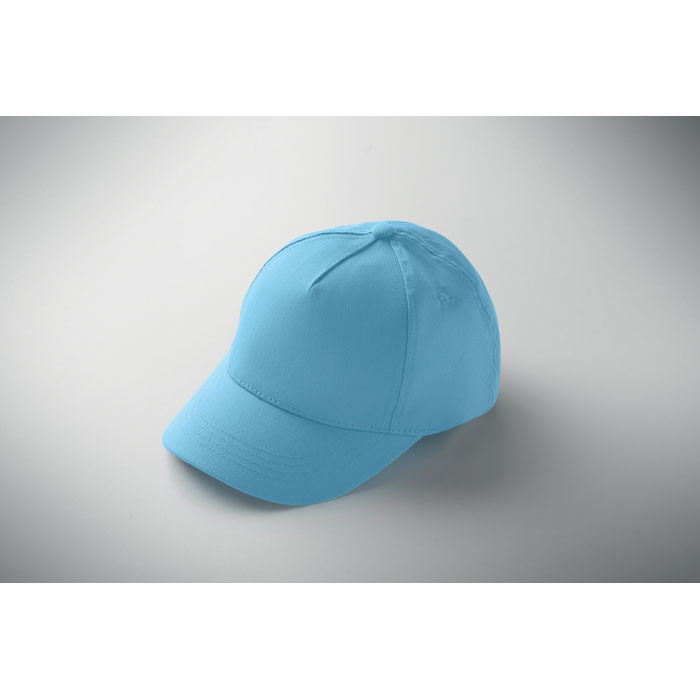 5 paneles gyermek baseball sapka 180 g/m² pamut twill anyagból, állítható tépőzáras záródással a kényelmes illeszkedés érdekében.