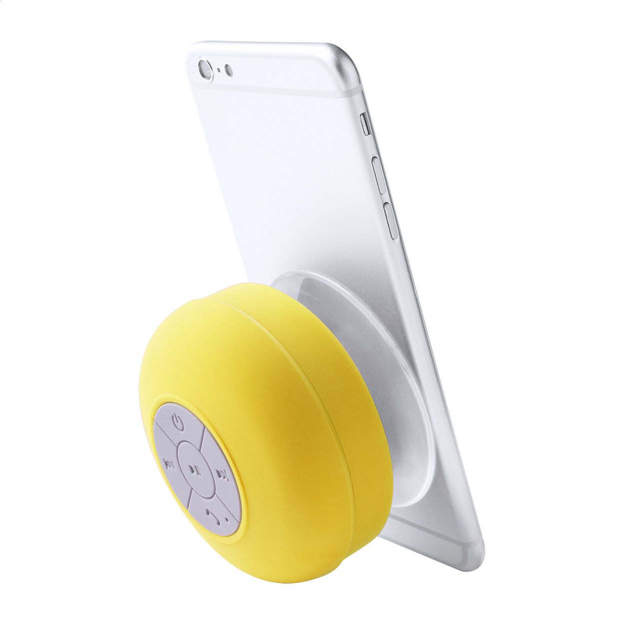 Vezeték nélküli hangszóró gumiborítású házzal és nagyméretű tapadókoronggal. Telefon kihangosító funkcióval és beépített újratölthető akkumulátorral ellátva. USB töltőkábellel szállítjuk.