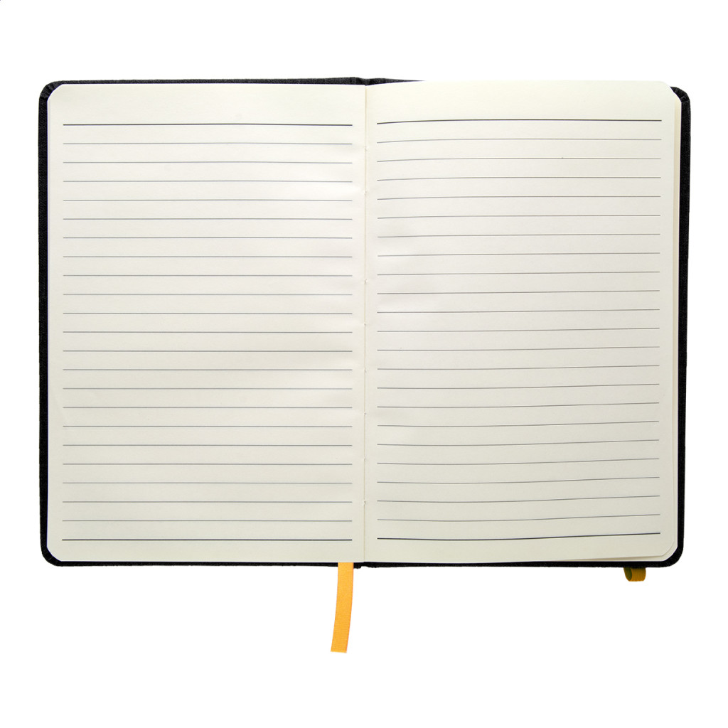 PU bőrrel borított jegyzetfüzet megegyező színű könyvjelzővel, gumiszalaggal és tolltartóval. 96 vonalas lappal, A5 méret.