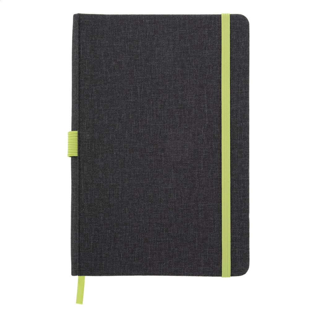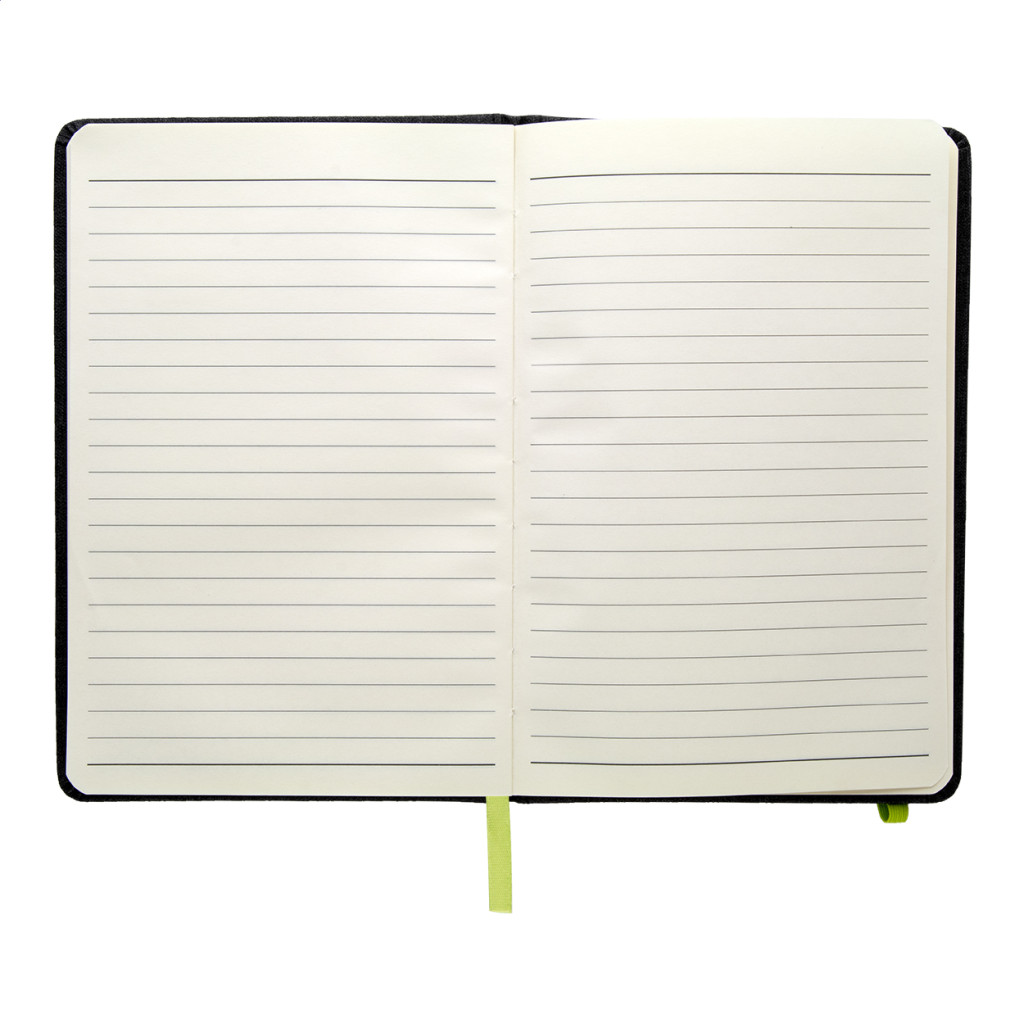 PU bőrrel borított jegyzetfüzet megegyező színű könyvjelzővel, gumiszalaggal és tolltartóval. 96 vonalas lappal, A5 méret.