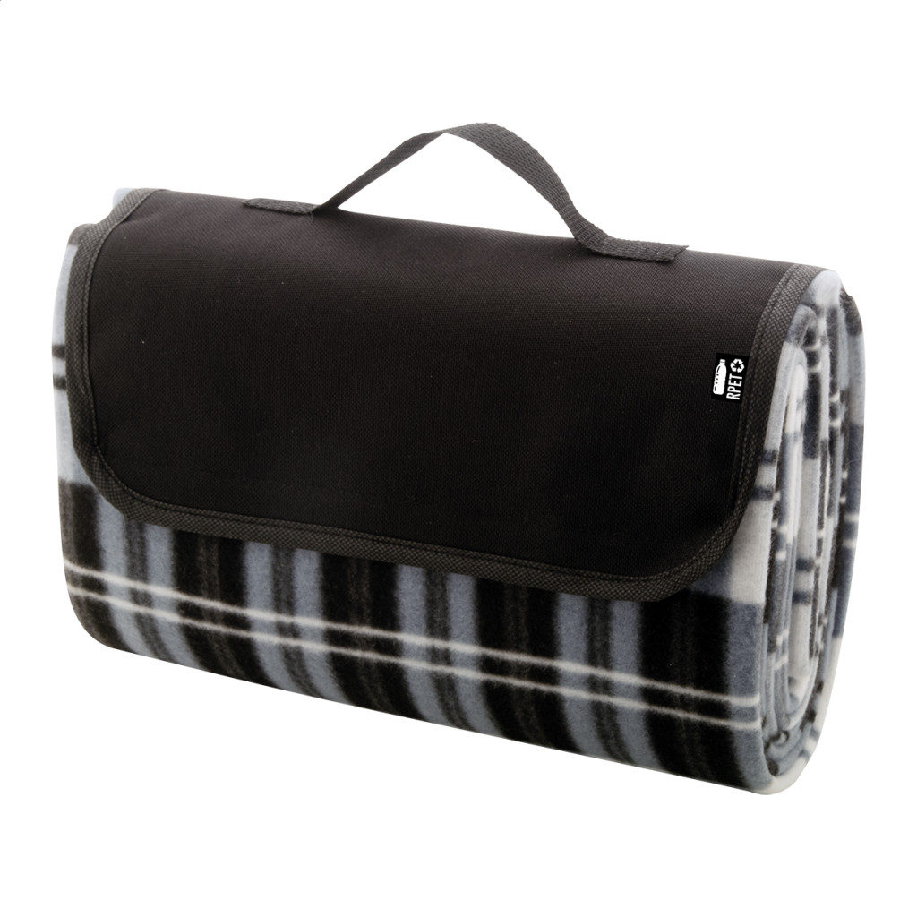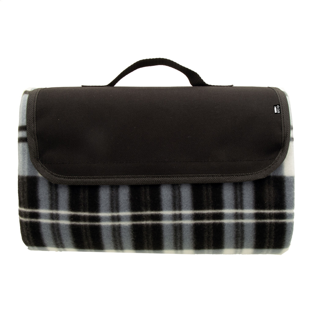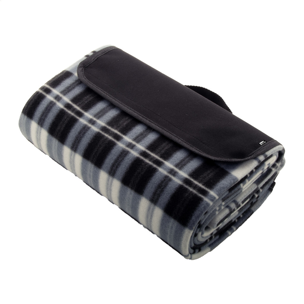 Összecsukható RPET polár polár pikniktakaró, vízálló bevonatú hátoldallal és fogantyúval. RPET poliészter, 160 g/m².