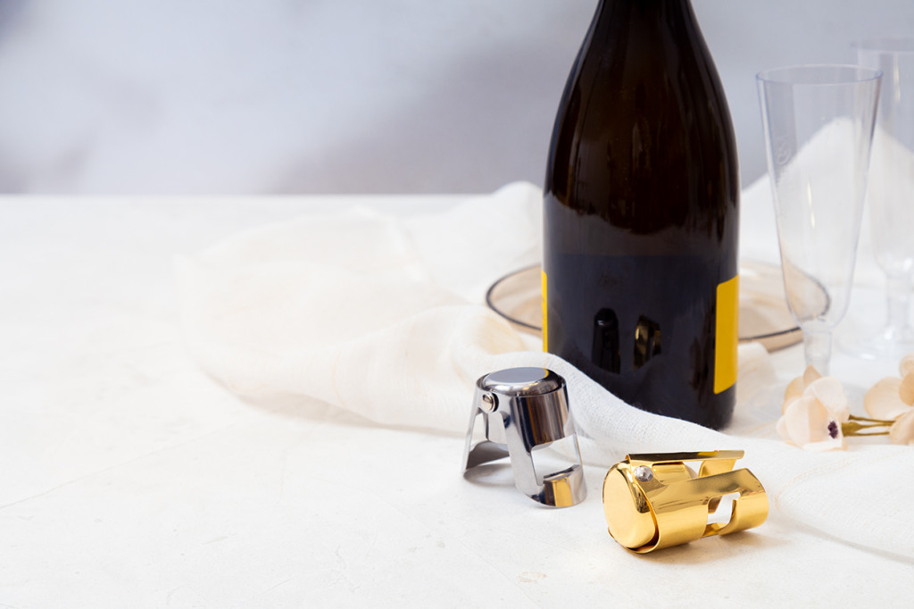 Rozsdamentes acél pezsgős dugó fémes kivitelben.