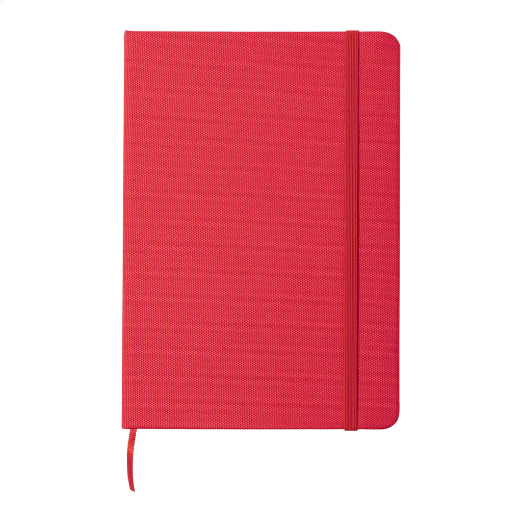 RPET poliészter borítású jegyzetfüzet 80 vonalas lappal, könyvjelzővel és gumipánttal. Méret: A5.