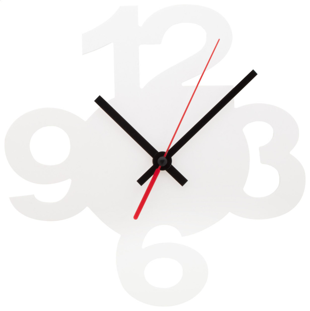 Egyedi gyártású, habosított PVC-ből készült falióra formára vágott számlappal. 1 db AA elemmel működik, elem nélkül szállítjuk. Minimális rendelési mennyiség: 50 db.