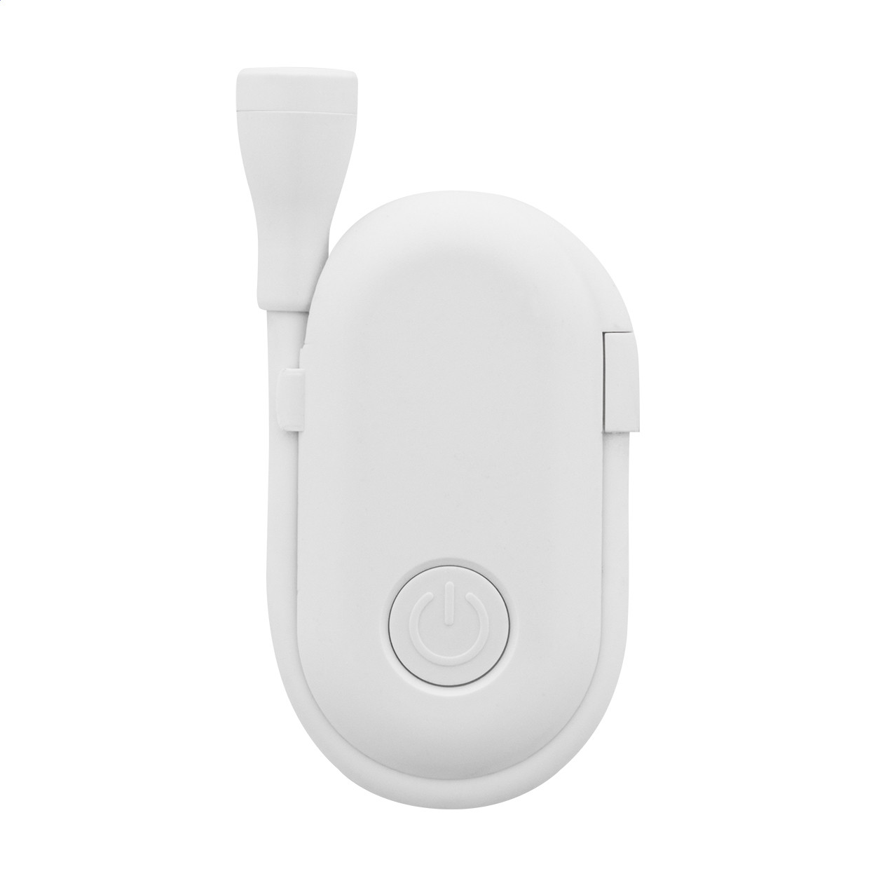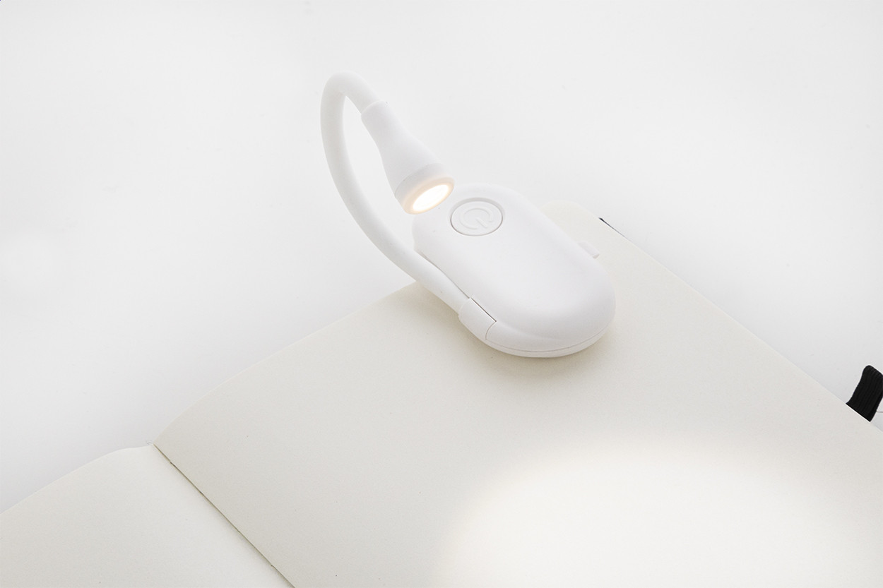 Rögzíthető olvasólámpa ABS-ből, rugalmas LED-lámpával és beépített USB újratölthető akkumulátorral (220 mAh). Meleg, természetes és hideg fénymódokkal. USB töltőkábellel.