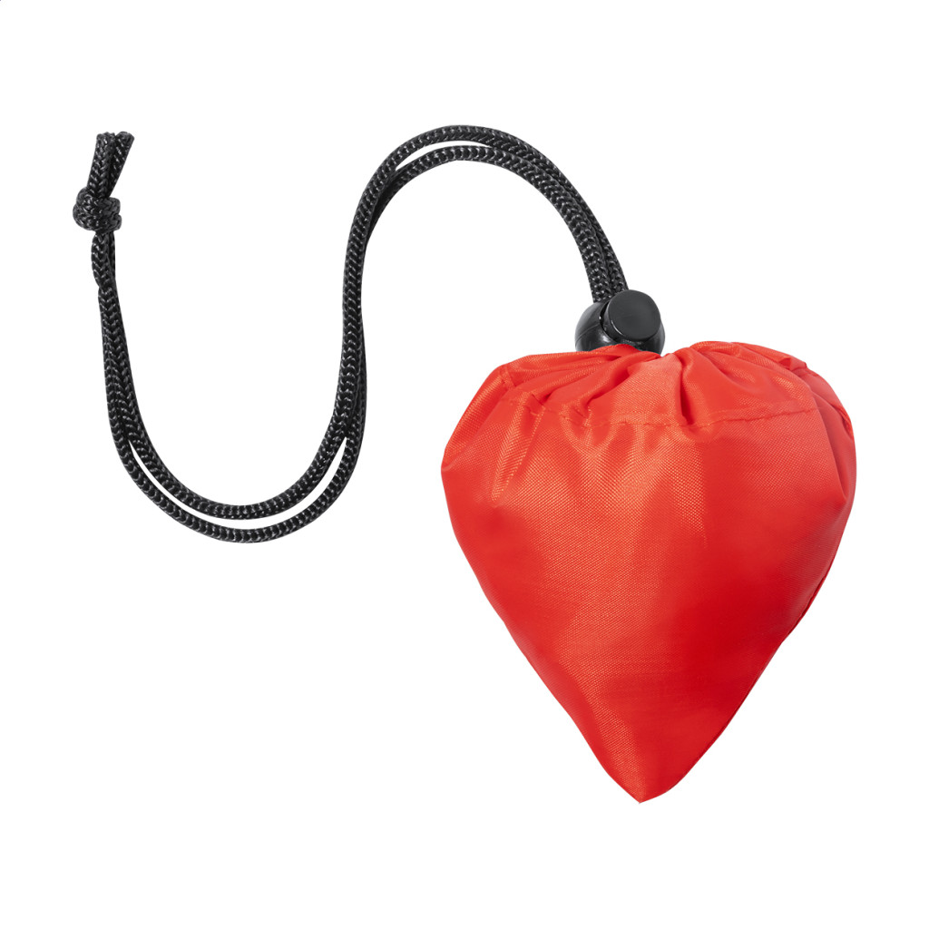Összehajtható RPET bevásárlótáska hosszú hordfüllel. 190T RPET poliészter, megkülönböztető RPET címkével.