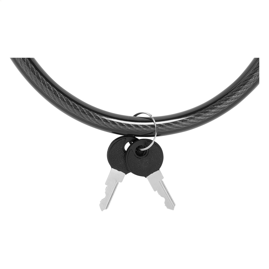 Kerékpár lakat PVC bevonatú acélhuzallal és 2 kulccsal.