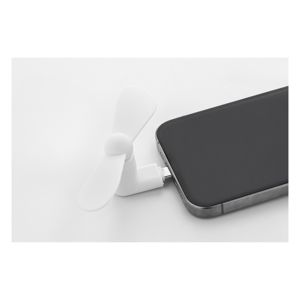 Elektromos mobiltelefon ventilátor USB-C csatlakozással, TPE műanyagból.