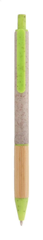 Környezetbarát búzaszalma műanyag golyóstoll bambusz markolattal és színes részekkel. Kék tollbetéttel szállítjuk.