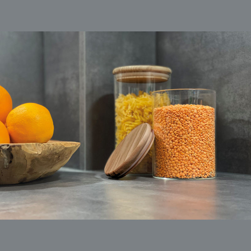 Boroszilikát üvegedény bambusz tetővel, 700 ml