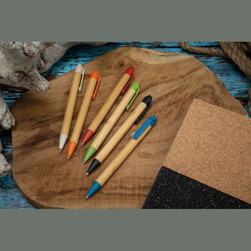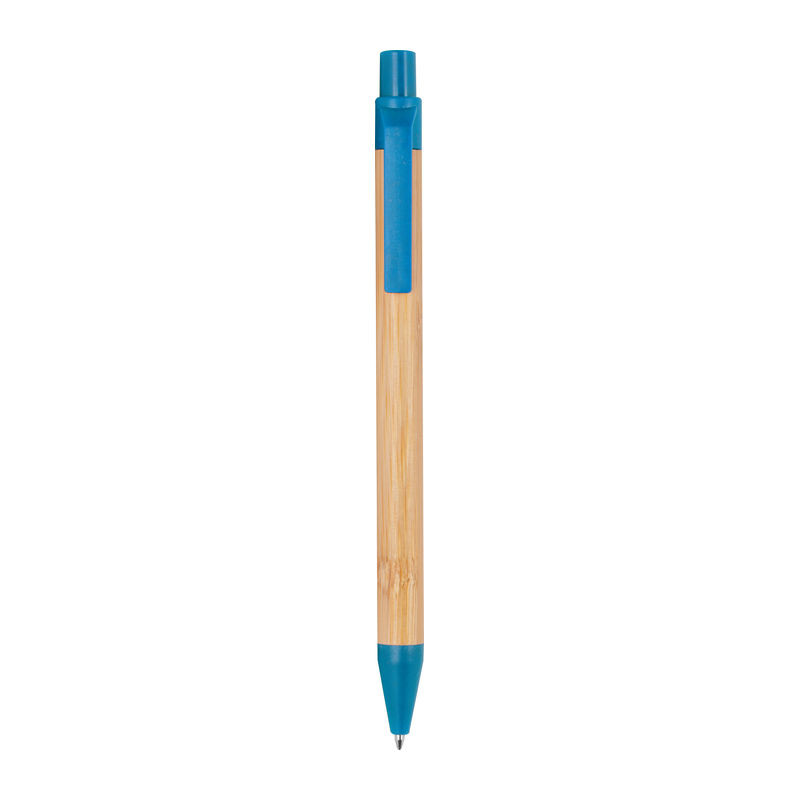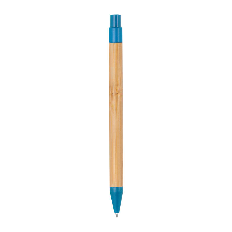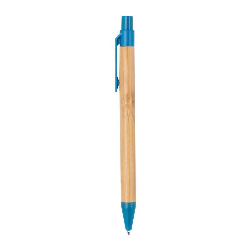 Környezetbarát, bambuszból készült golyóstoll búzaszalma kiegészítőkkel, kék tollbetéttel.