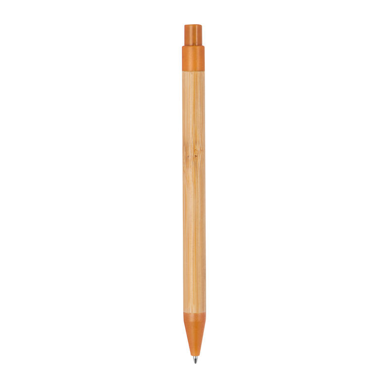Környezetbarát, bambuszból készült golyóstoll búzaszalma kiegészítőkkel, kék tollbetéttel.