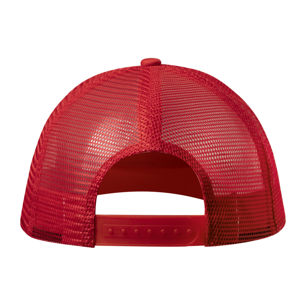 5 paneles baseball sapka hálós hátsó résszel és műanyag állítható szíjjal, poliészter.
