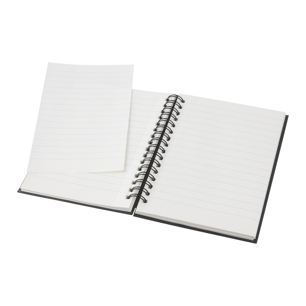 Újrahasznosított papírból készült, A6-os spirálozott jegyzetfüzet 80 lappal.