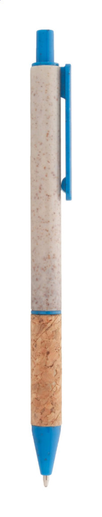 Környezetbarát búzaszalma műanyag golyóstoll természetes parafa markolattal és színes részekkel. Kék tollbetéttel szállítjuk.