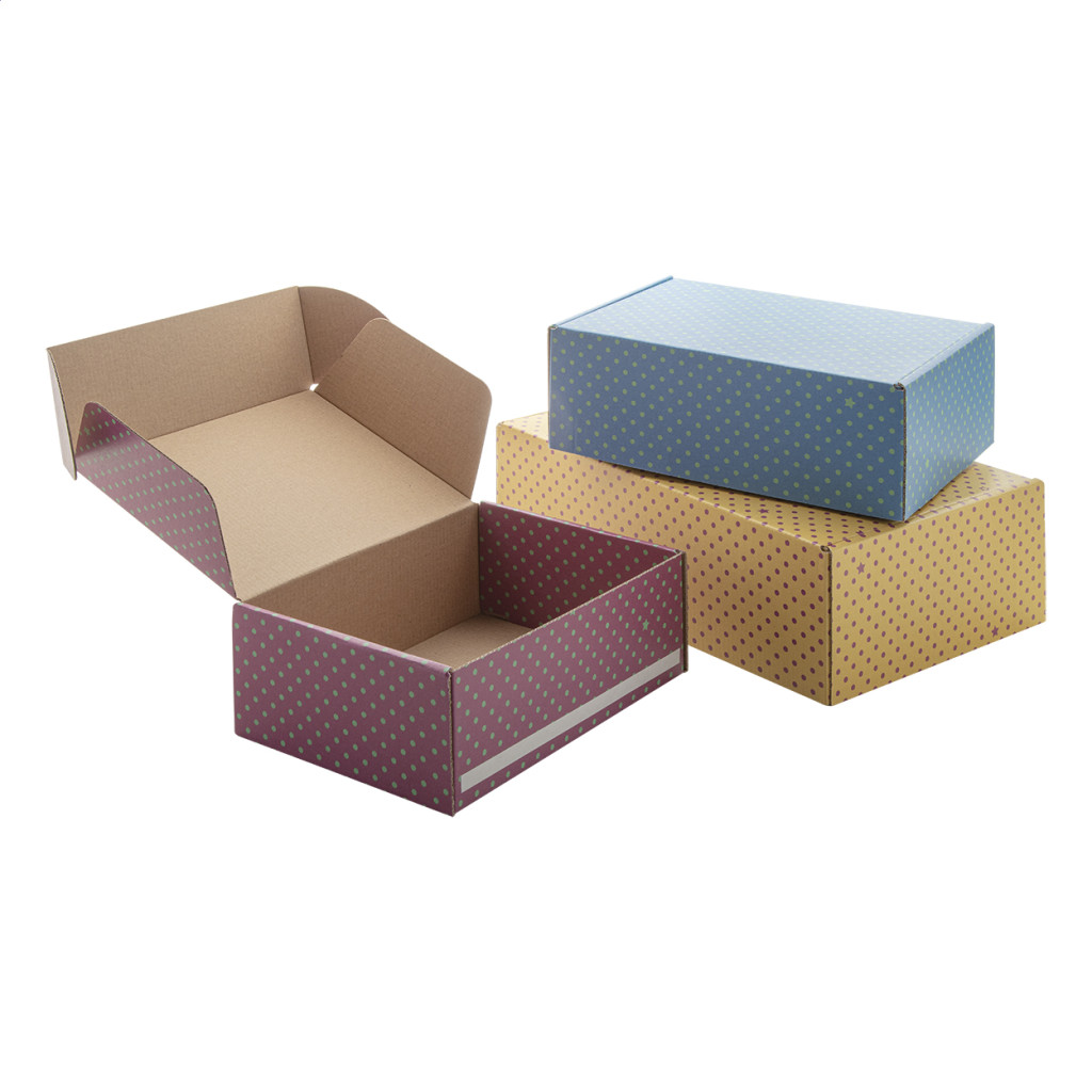 Egyedi gyártású, hullámkartonból készült önzárós postai ajándékdoboz. A termék ára tartalmazza a full colour emblémázás költségét. A terméket lapra szerelve szállítjuk. Minimális rendelési mennyiség: 50 db.