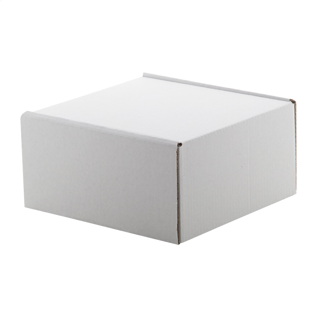 Egyedi gyártású, négyzet alapú, hullámkartonból készült önzáró ragasztócsíkkal ellátott postai ajándékdoboz. A termék ára tartalmazza a full colour emblémázás költségét. A terméket lapra szerelve szállítjuk. Minimális rendelési mennyiség: 50 db.