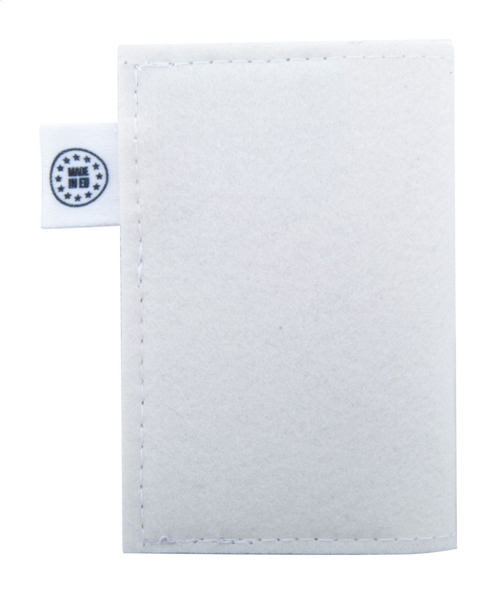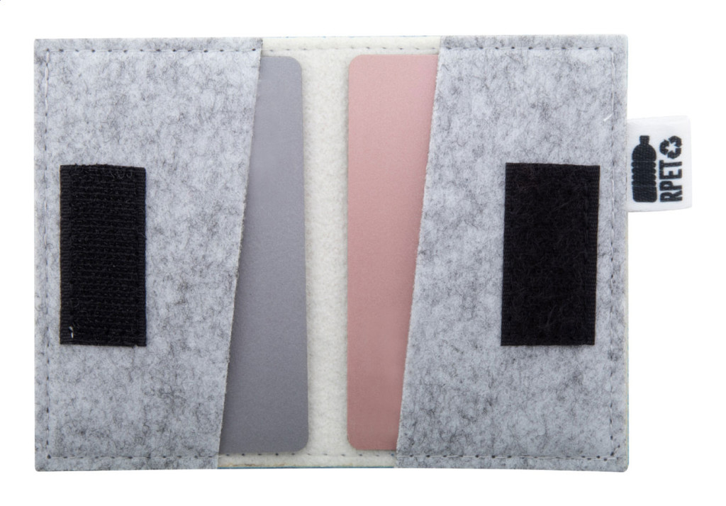 Egyediesíthető, RPET filc bankkártyatartó 2 rekesszel, tépőzárral és full colour emblémázású fedlappal. Megkülönböztető RPET címkével. Az ár tartalmazza a szublimációs emblémázás költségét. Minimális rendelési mennyiség: 50 db.