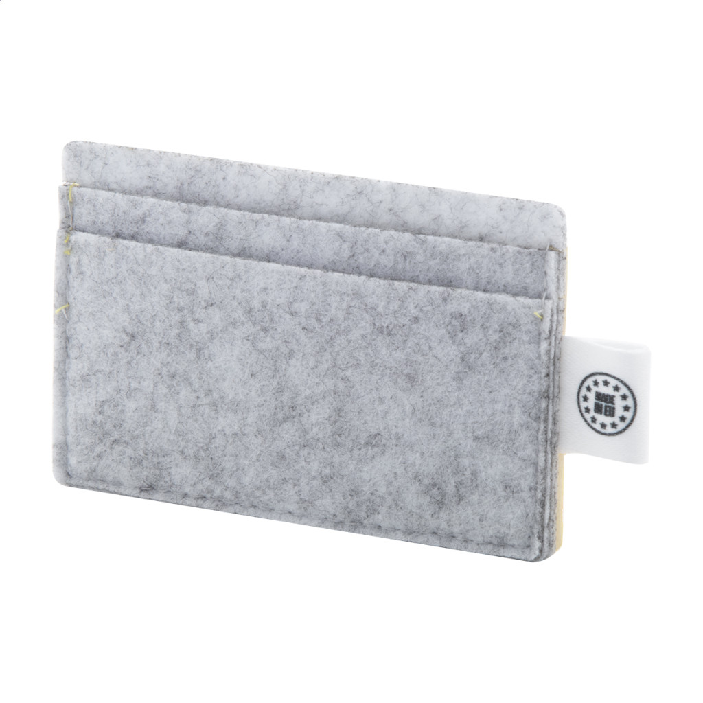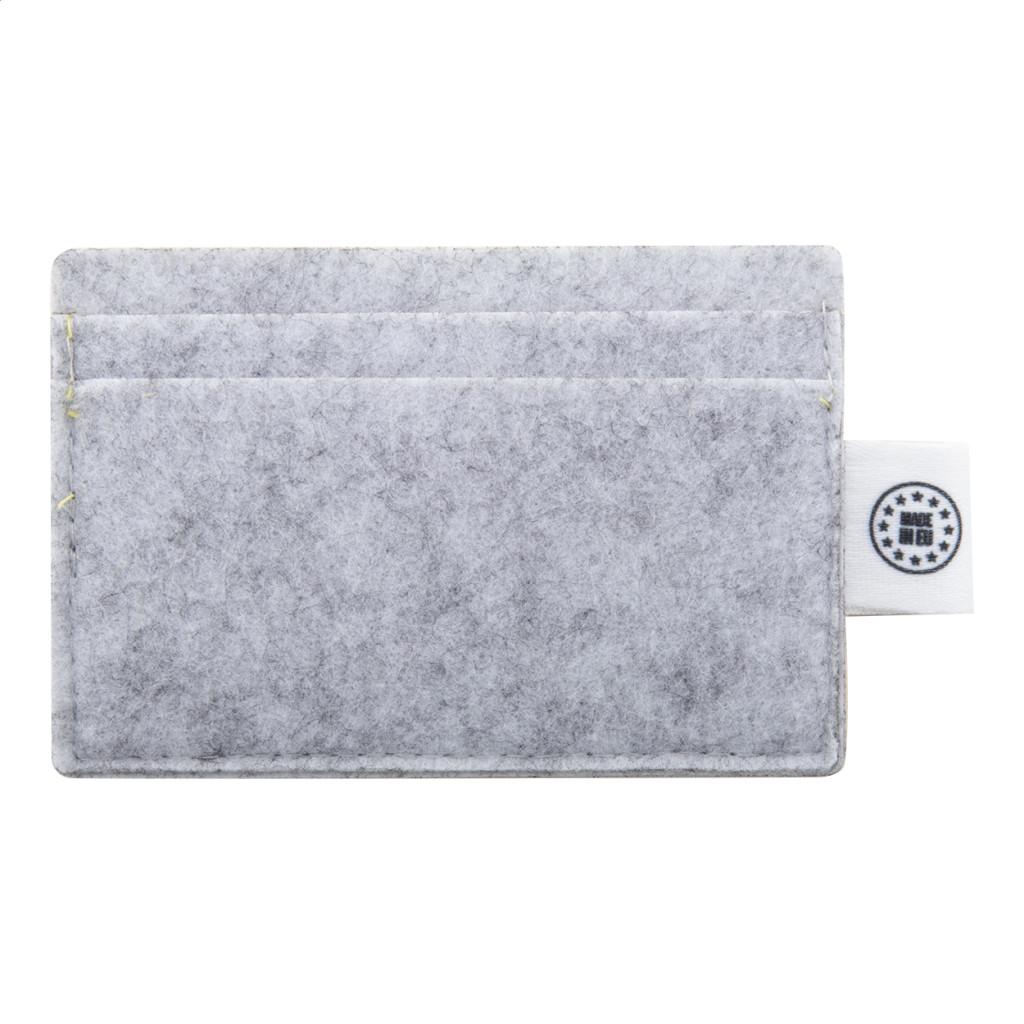 Egyediesíthető, RPET filc bankkártyatartó 3 rekesszel és full colour emblémázású fedlappal. Megkülönböztető RPET címkével. Az ár tartalmazza a szublimációs emblémázás költségét. Minimális rendelési mennyiség: 50 db.