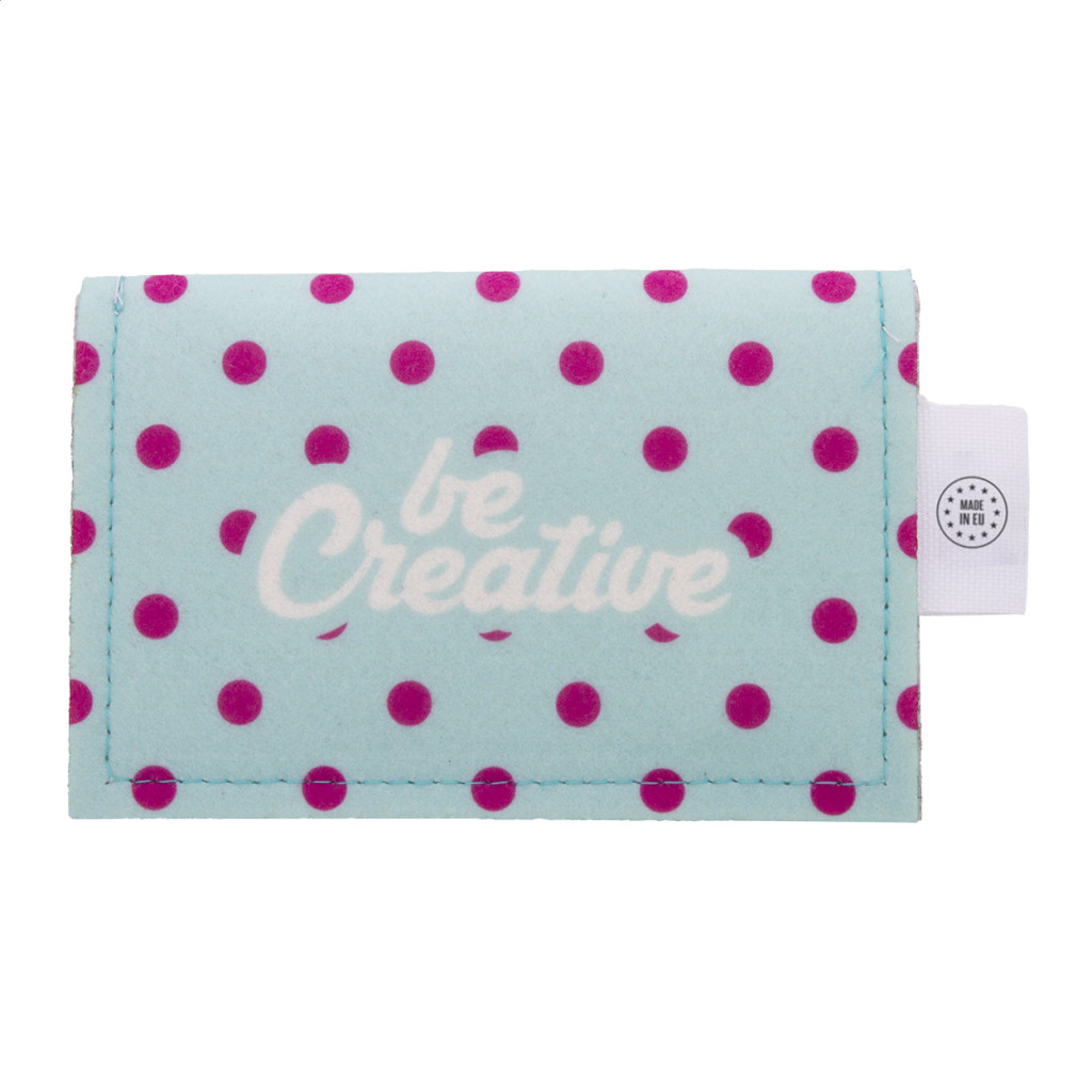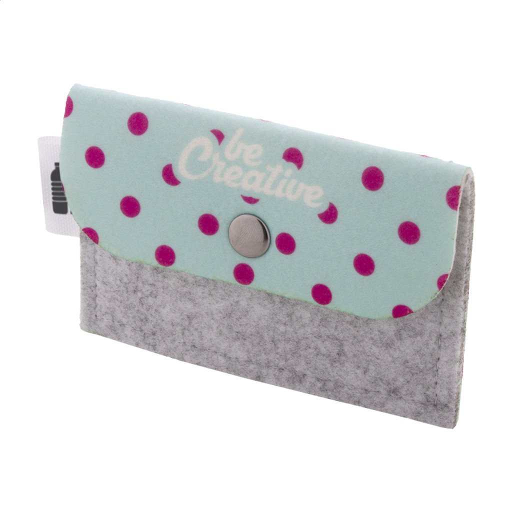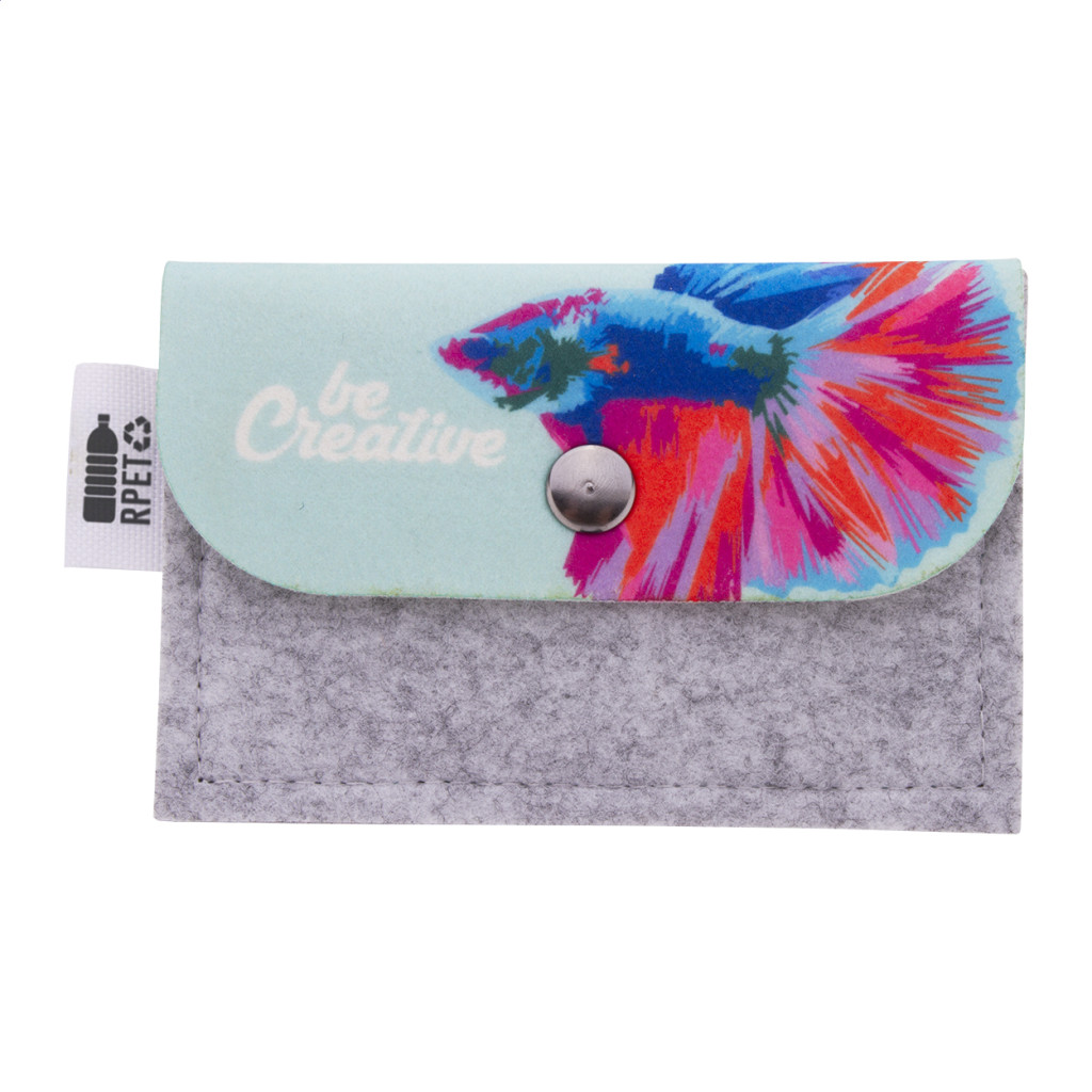 Egyediesíthető, RPET filc pénztárca full colour emblémázott patenttal és hátlappal. Megkülönböztető RPET címkével. Az ár tartalmazza a szublimációs emblémázást. Minimális rendelési mennyiség: 50 db.