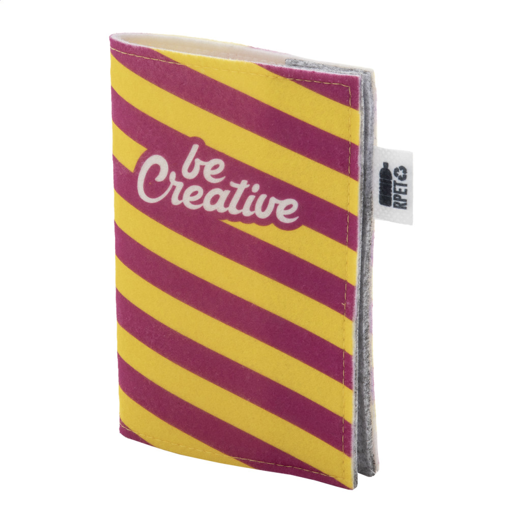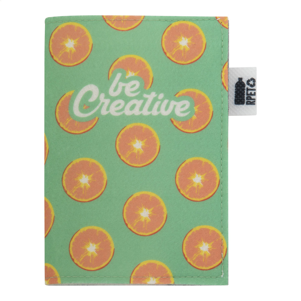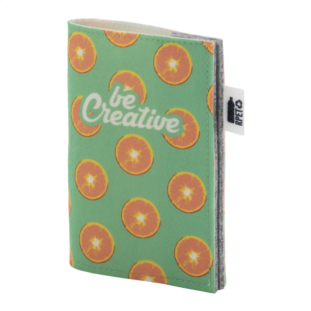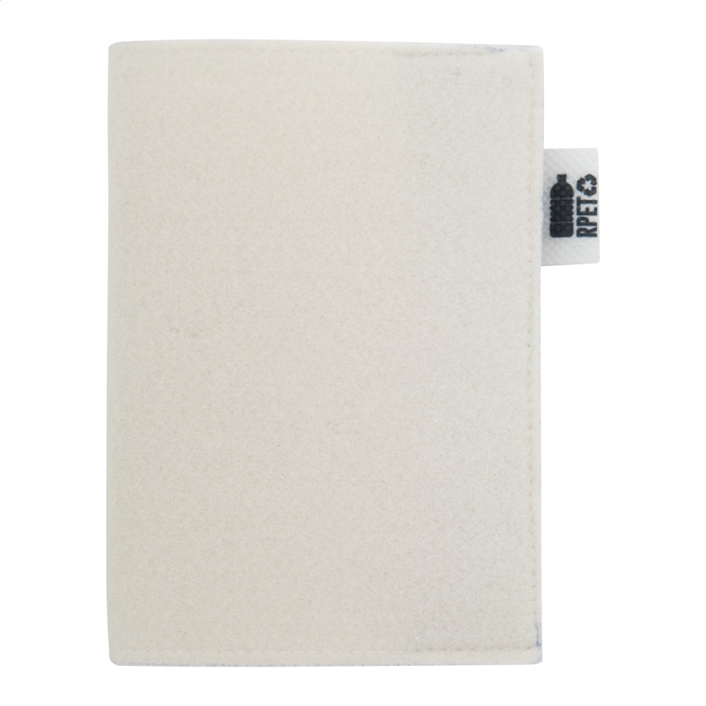 Egyedi gyártású, RPET filc útlevéltartó full-colour emblémázható borítóval és patentos záródással. Megkülönböztető RPET címkével. Az ár tartalmazza a szublimációs emblémázást. Minimális rendelési mennyiség: 50 db.