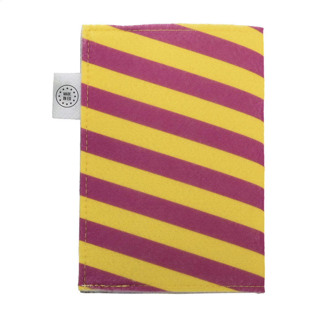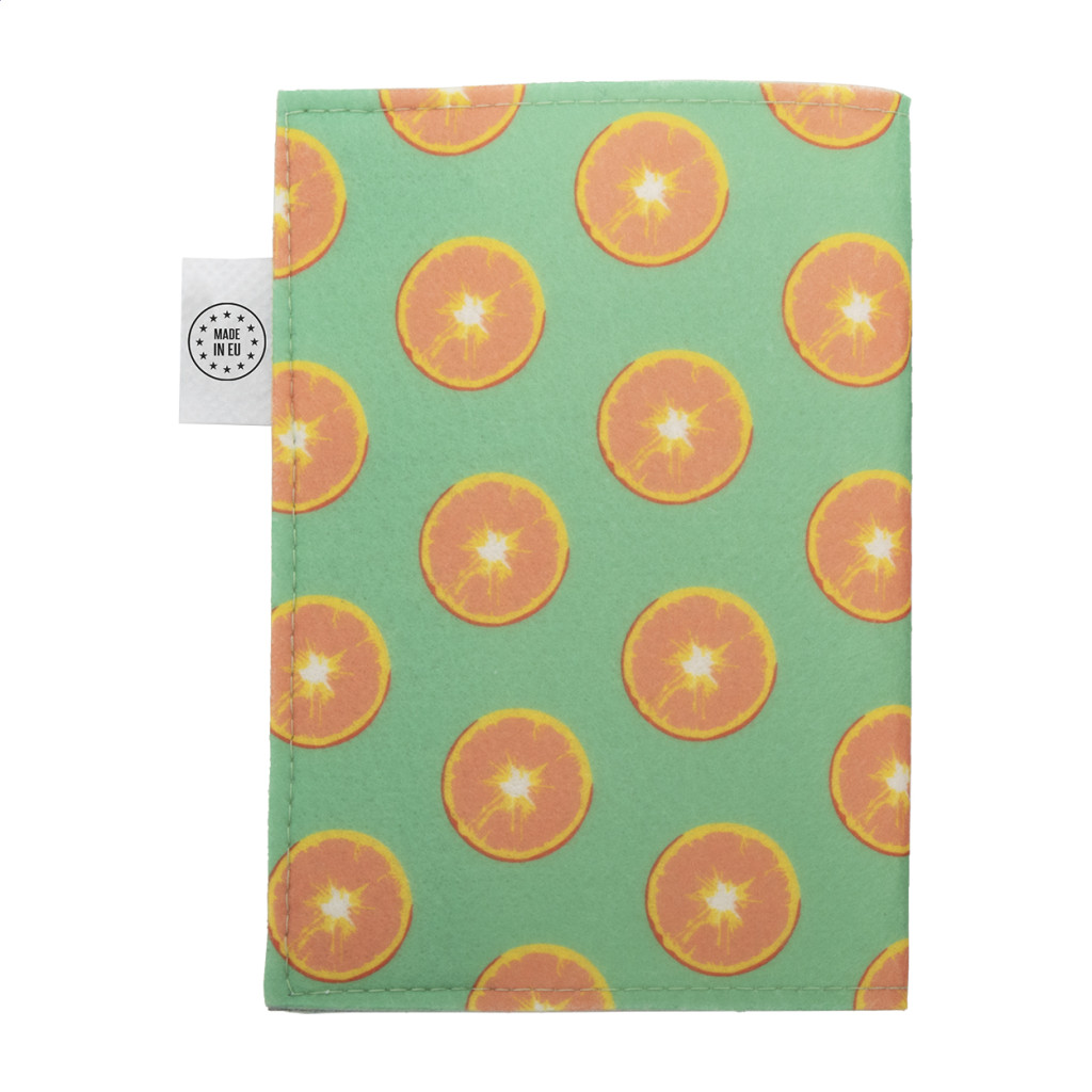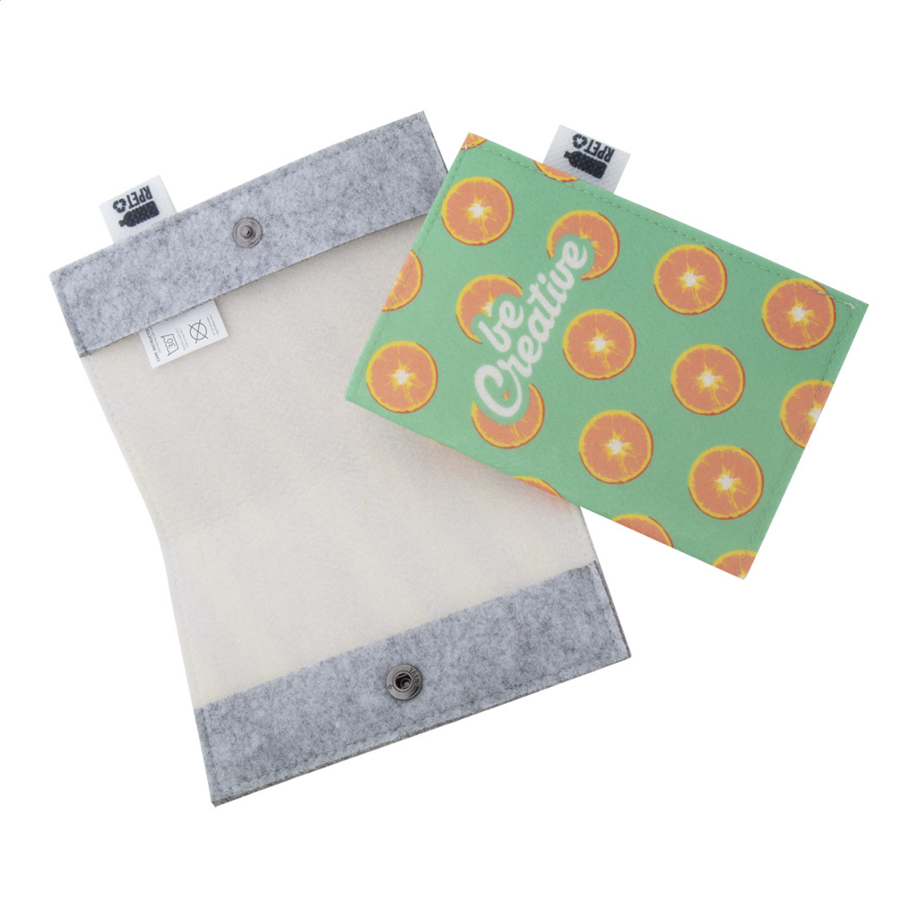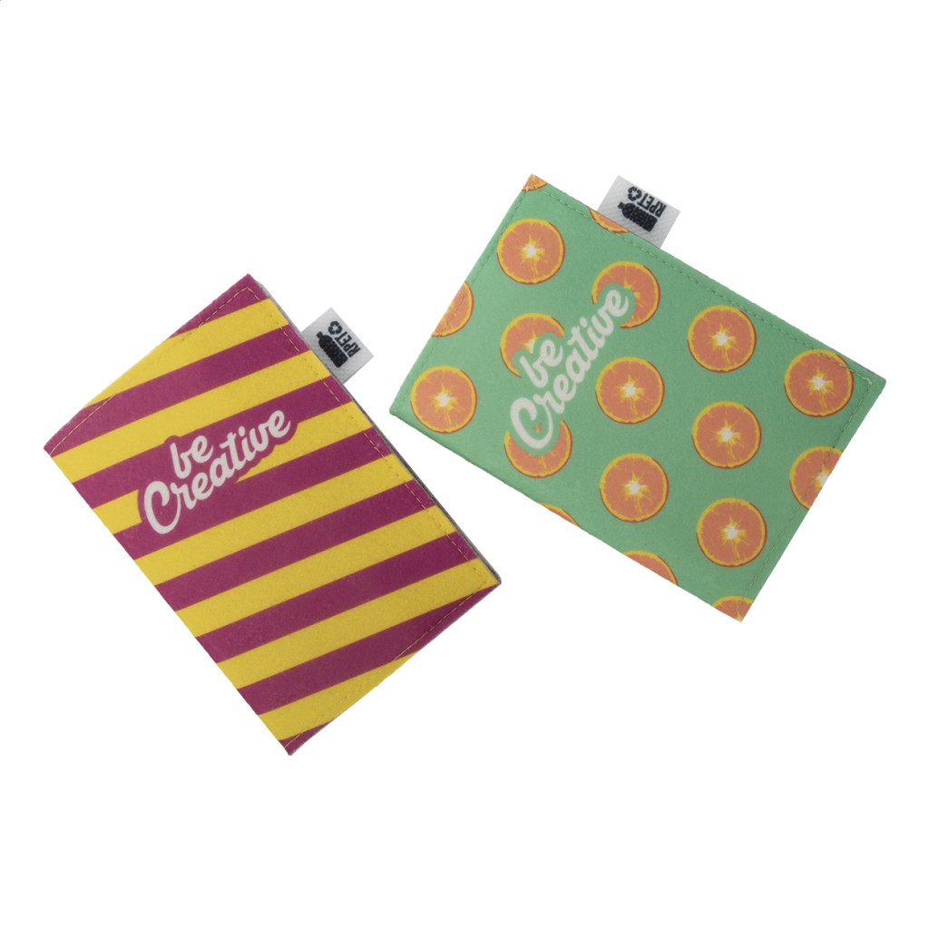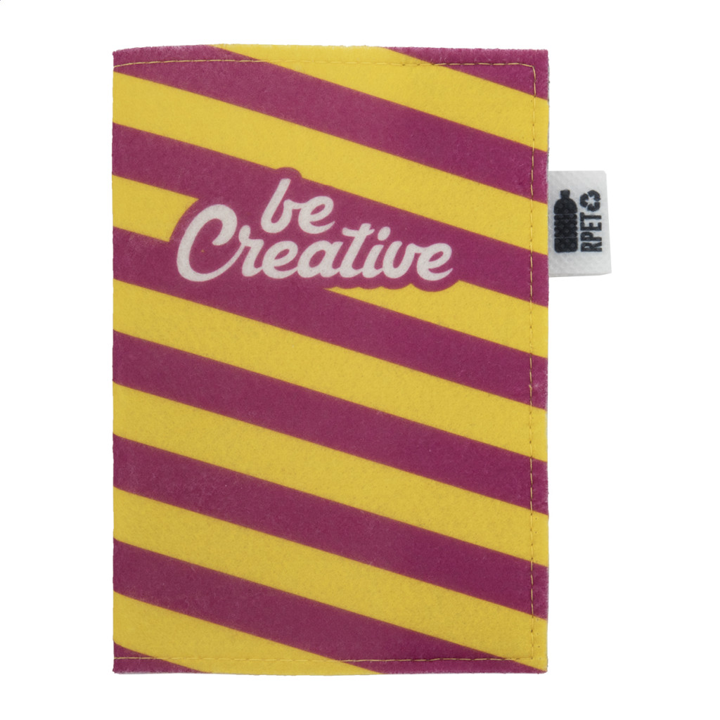 Egyedi gyártású, RPET filc útlevéltartó full-colour emblémázható borítóval és patentos záródással. Megkülönböztető RPET címkével. Az ár tartalmazza a szublimációs emblémázást. Minimális rendelési mennyiség: 50 db.