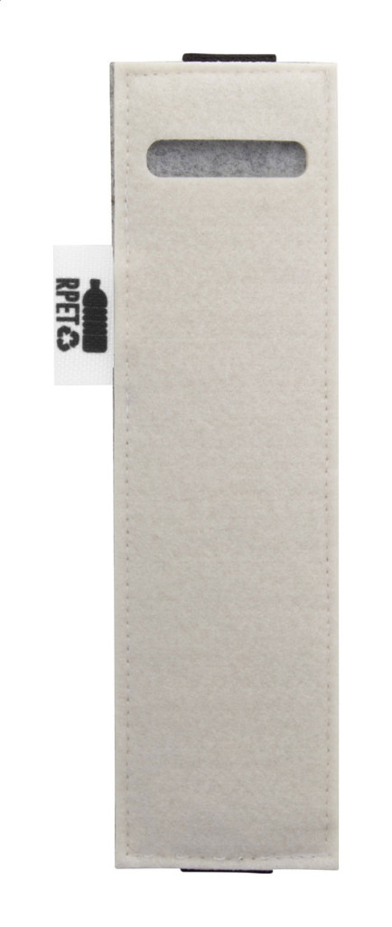Egyedi gyártású, RPET filc tolltartó full colour nyomtatott oldallal és jegyzetfüzethez rögzíthető gumiszalaggal. Megkülönböztető RPET címkével. Az ár tartalmazza a szublimációs emblémázást. Minimális rendelési mennyiség: 50 db.