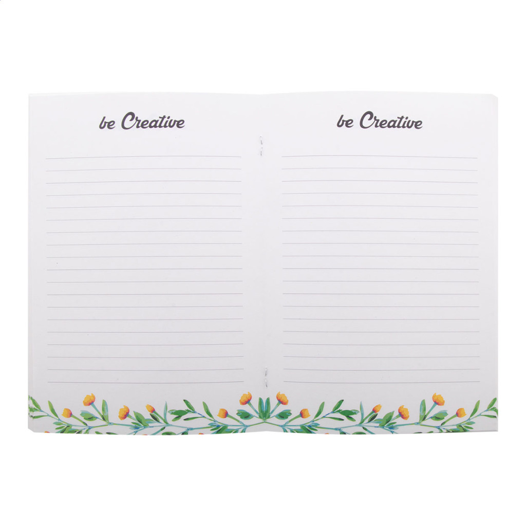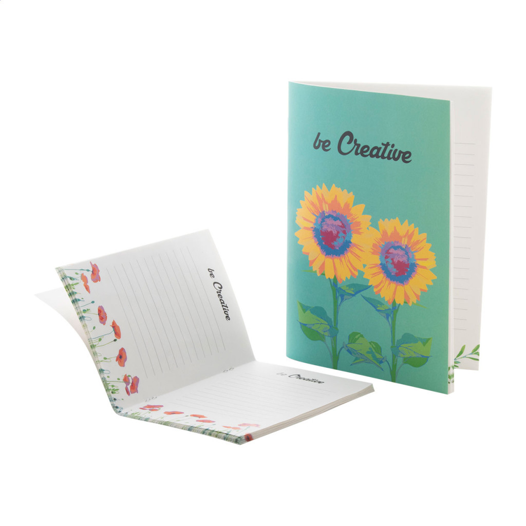 Egyediesíthető, A5 méretű jegyzetfüzett újrahasznosított papír borítóval, 32 újrahasznosított papírlappal. Az ár tartalmazza a borító full colour emblémázását és egy további mintát minden belső oldalon. Minimális rendelési mennyiség: 100 db.