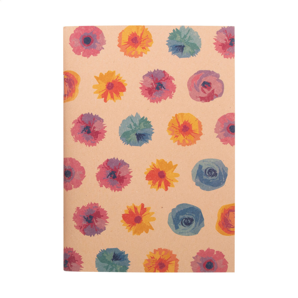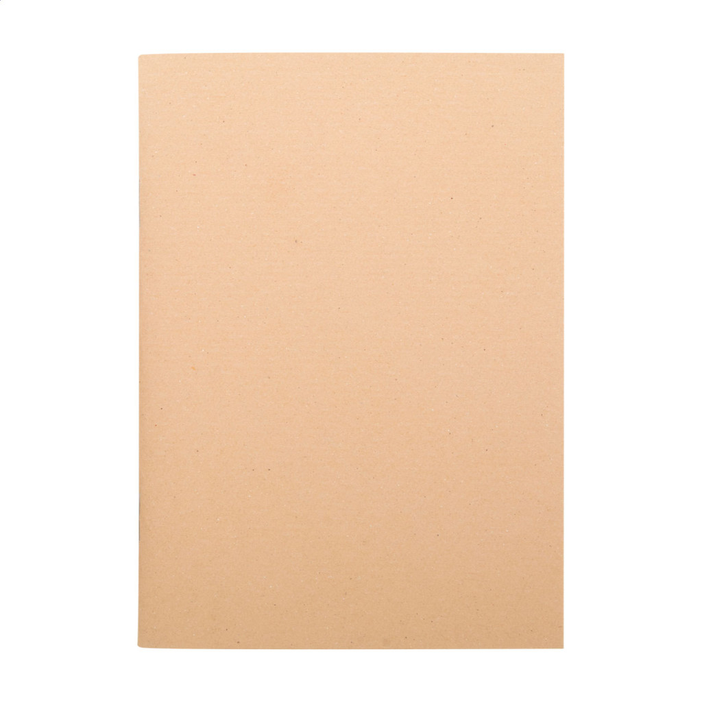 Egyediesíthető, A6 méretű jegyzetfüzett újrahasznosított kraft papír borítóval, 32 újrahasznosított papírlappal. Az ár tartalmazza a borító full colour emblémázását és egy további mintát minden belső oldalon. Minimális rendelési mennyiség: 100 db.