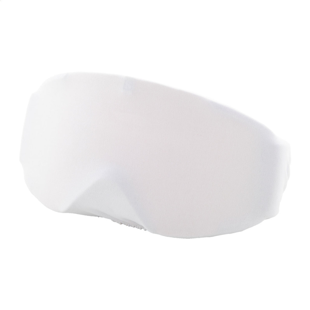 Egyediesíthető síszemüveg védő gumiszalaggal. 100% poliészter, 140 gr/m². Teljes felületén szublimációs eljárással emblémázható. Minimális rendelési mennyiség: 100 db.