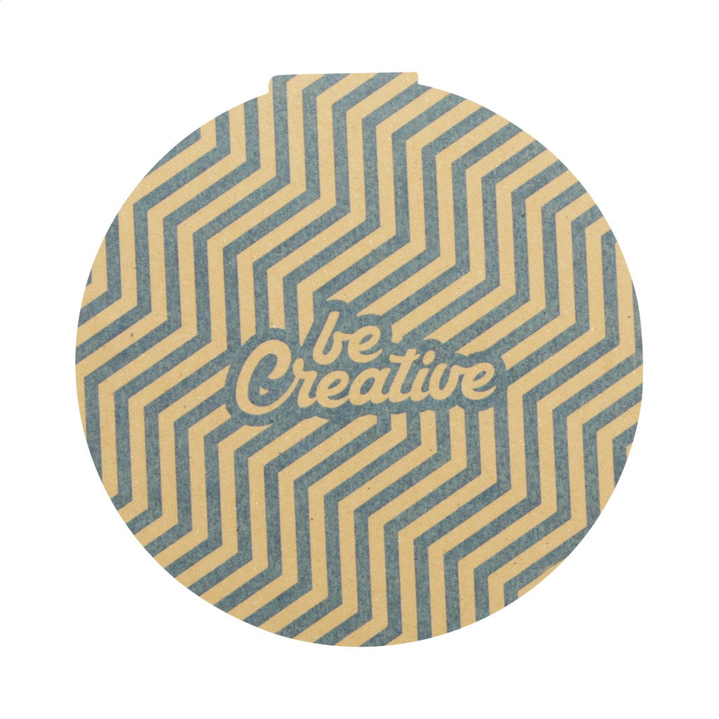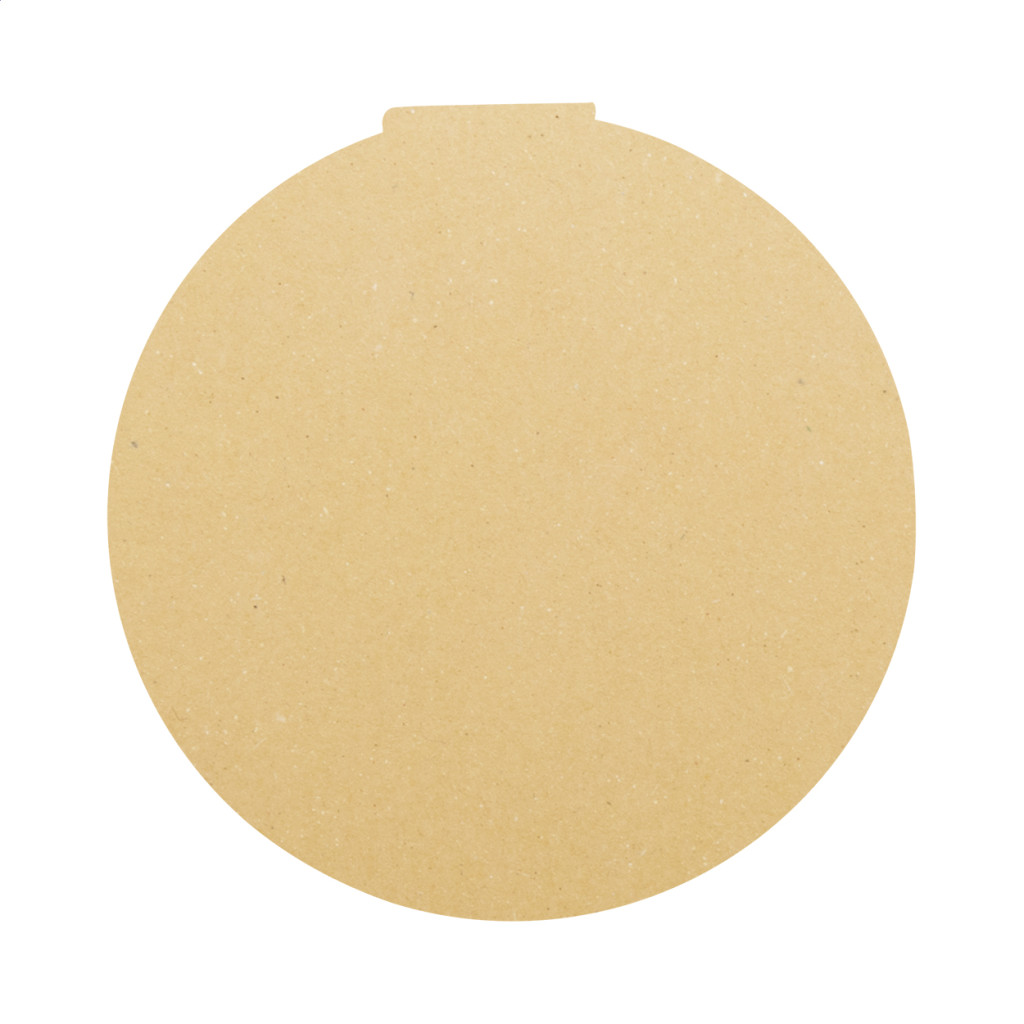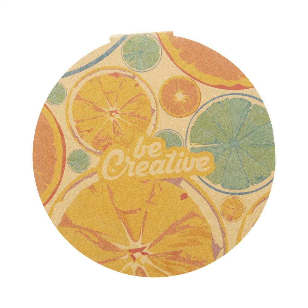 Egyediesíthető, újrahasznosított kraft papír borítású, kerek öntapadós jegyzettömb. 50 újrahasznosított papír öntapadós jegyzetlapot tartalmaz. Az ár tartalmazza a külső borító full-colour nyomtatását. Minimális rendelési mennyiség: 100 db.