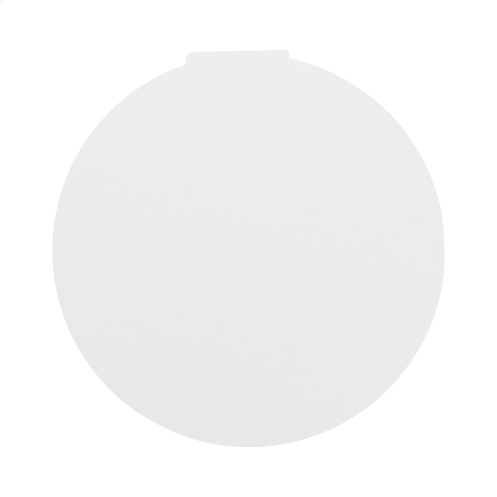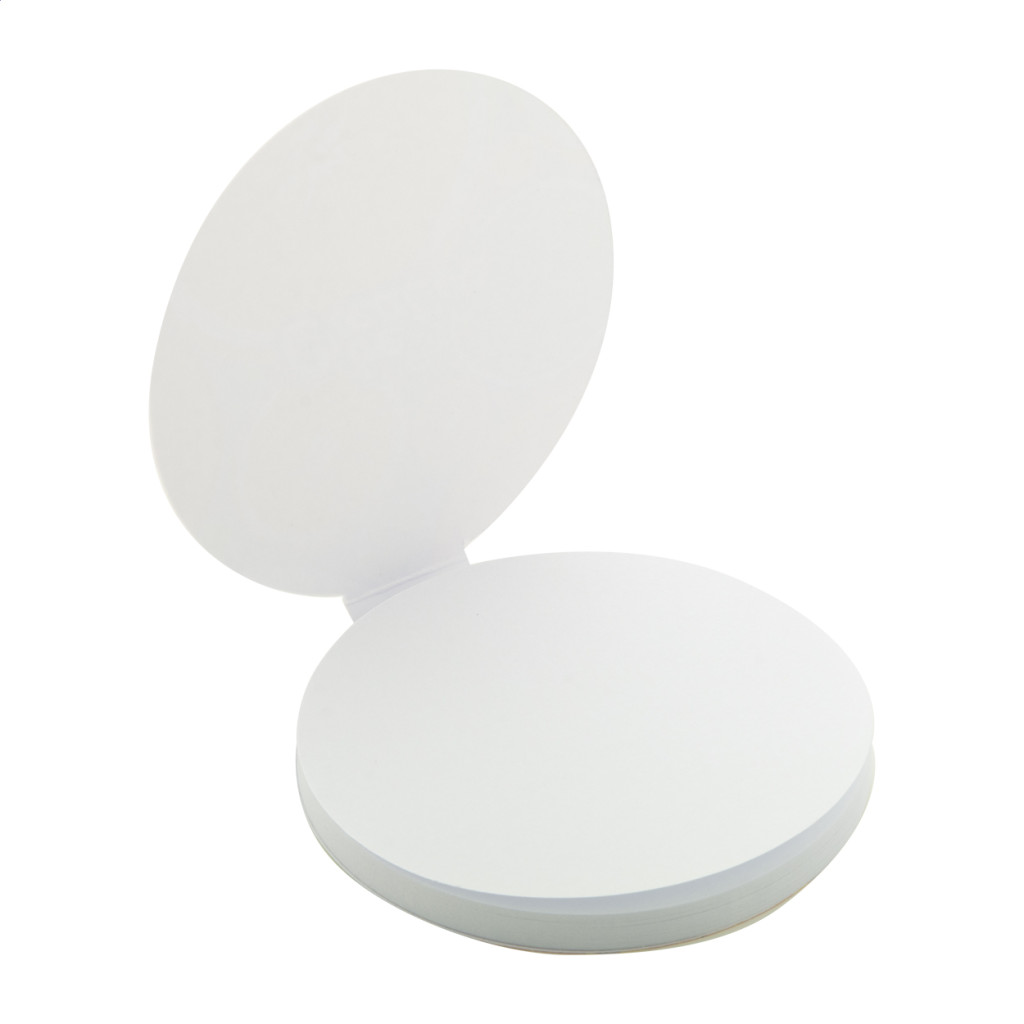 Egyediesíthető, papír borítású, kerek öntapadós jegyzettömb. 50 újrahasznosított papír öntapadós jegyzetlapot tartalmaz. Az ár tartalmazza a külső borító full-colour nyomtatását. Minimális rendelési mennyiség: 100 db.