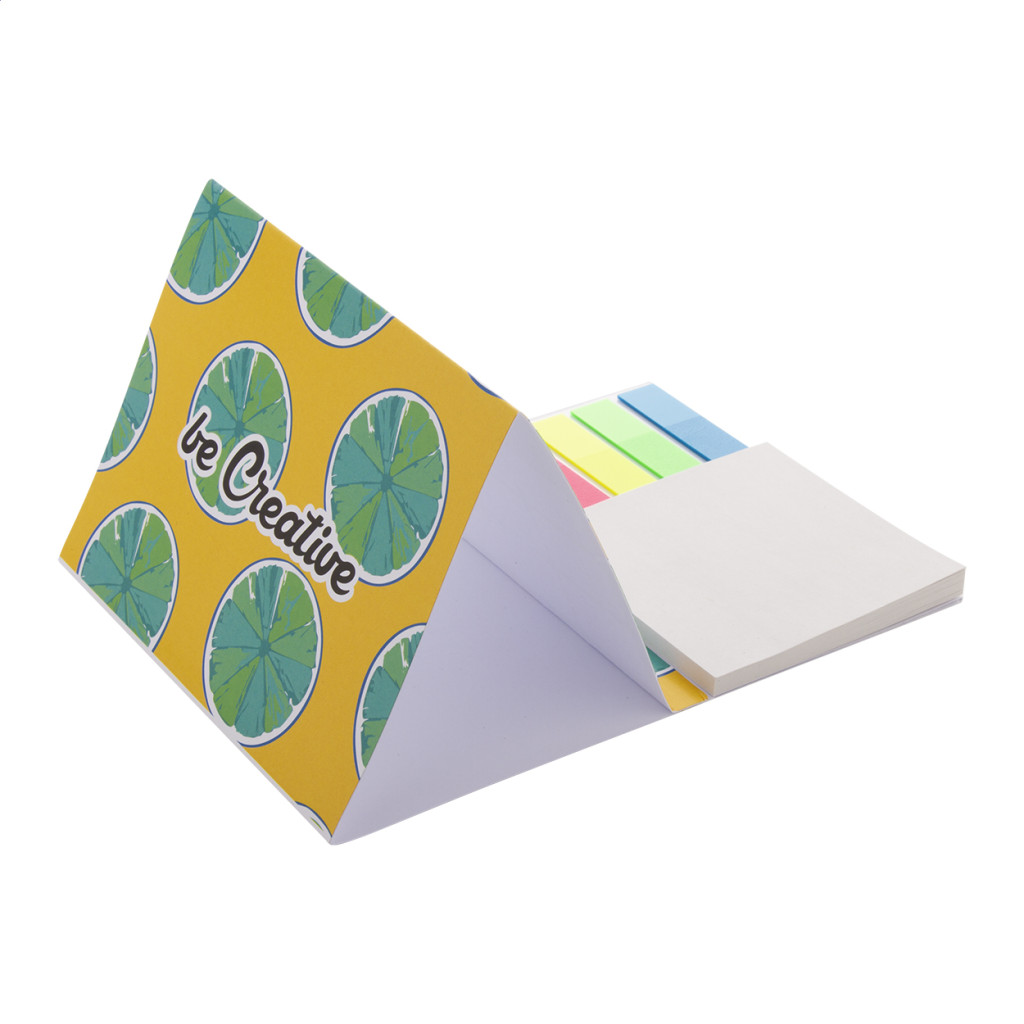 Egyediesíthető papír naptár öntapadós lapokkal. Tartalmaz 50 újrahasznosított papírból készült öntapadós lapot (75×75 mm) és 100 műanyag oldaljelölőt 5 különböző színben (44×12 mm). Az ár tartalmazza a full colour nyomtatást a külső borítón. Minimális rendelési mennyiség: 100 db.