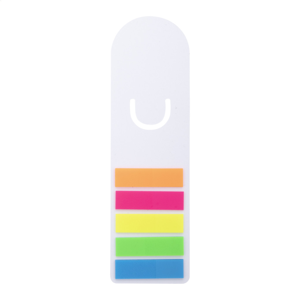 Egyediesíthető, papír könyvjelző oldaljelölőkkel. Tartalmaz 100 műanyag fólia oldaljelölőt 5 különböző színben (44×12 mm). Az ár tartalmazza a külső borító full-colour nyomtatását. Minimális rendelési mennyiség: 100 db.