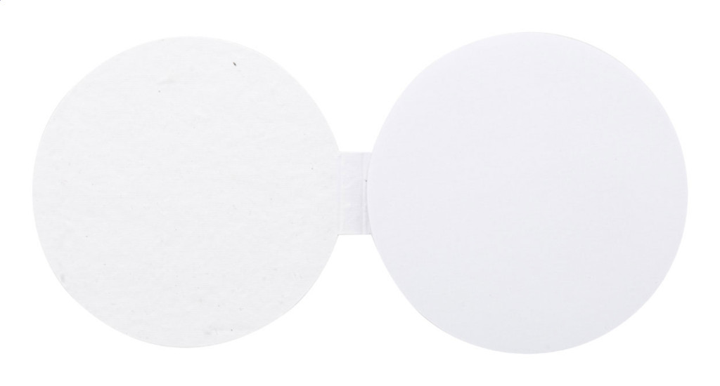Egyediesíthető, magpapír borítású, kör alakú öntapadós jegyzettömb. 50 újrahasznosított papír öntapadós jegyzetlapot tartalmaz. Az ár tartalmazza a külső borító full-colour nyomtatását. Minimális rendelési mennyiség: 100 db. Válogatott vadvirágmagokkal.