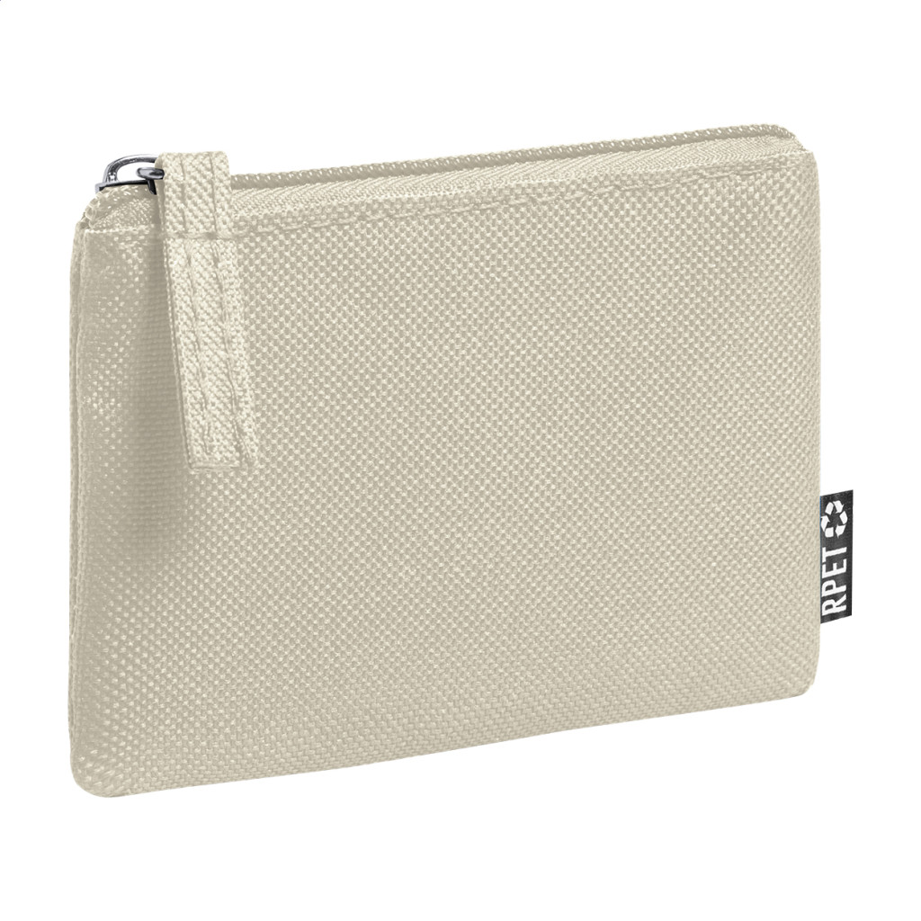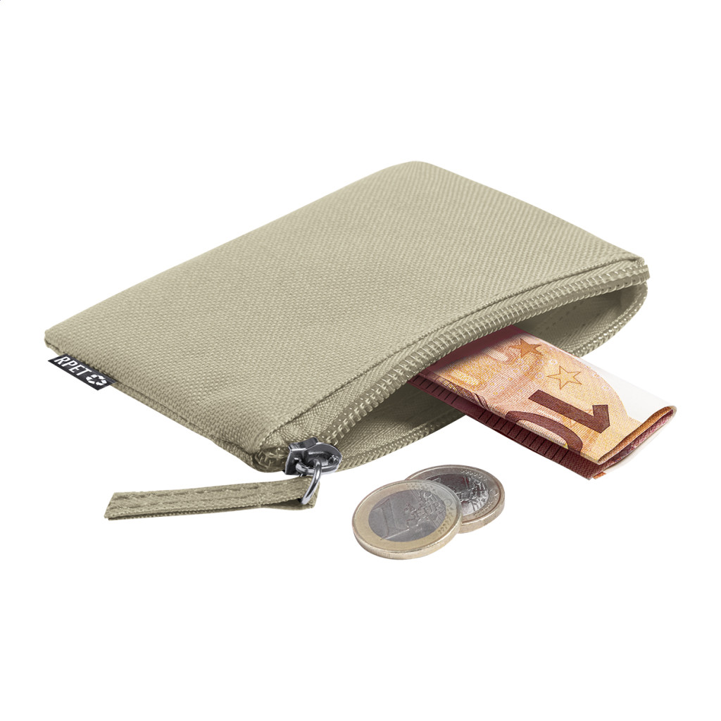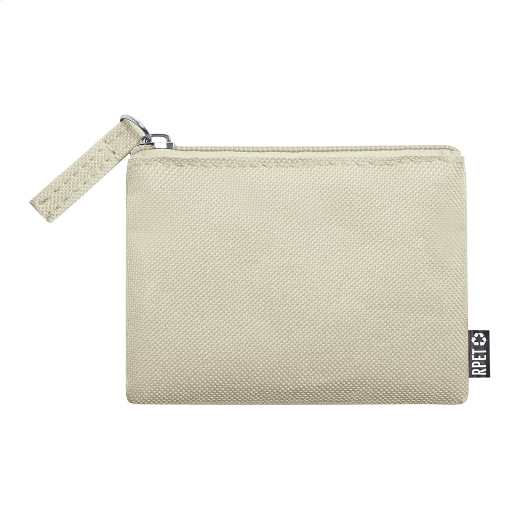 Cipzáras 600D RPET poliészter pénztárca megkülönböztető RPET címkével.