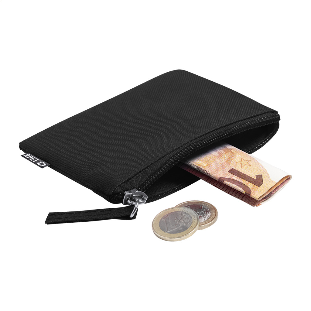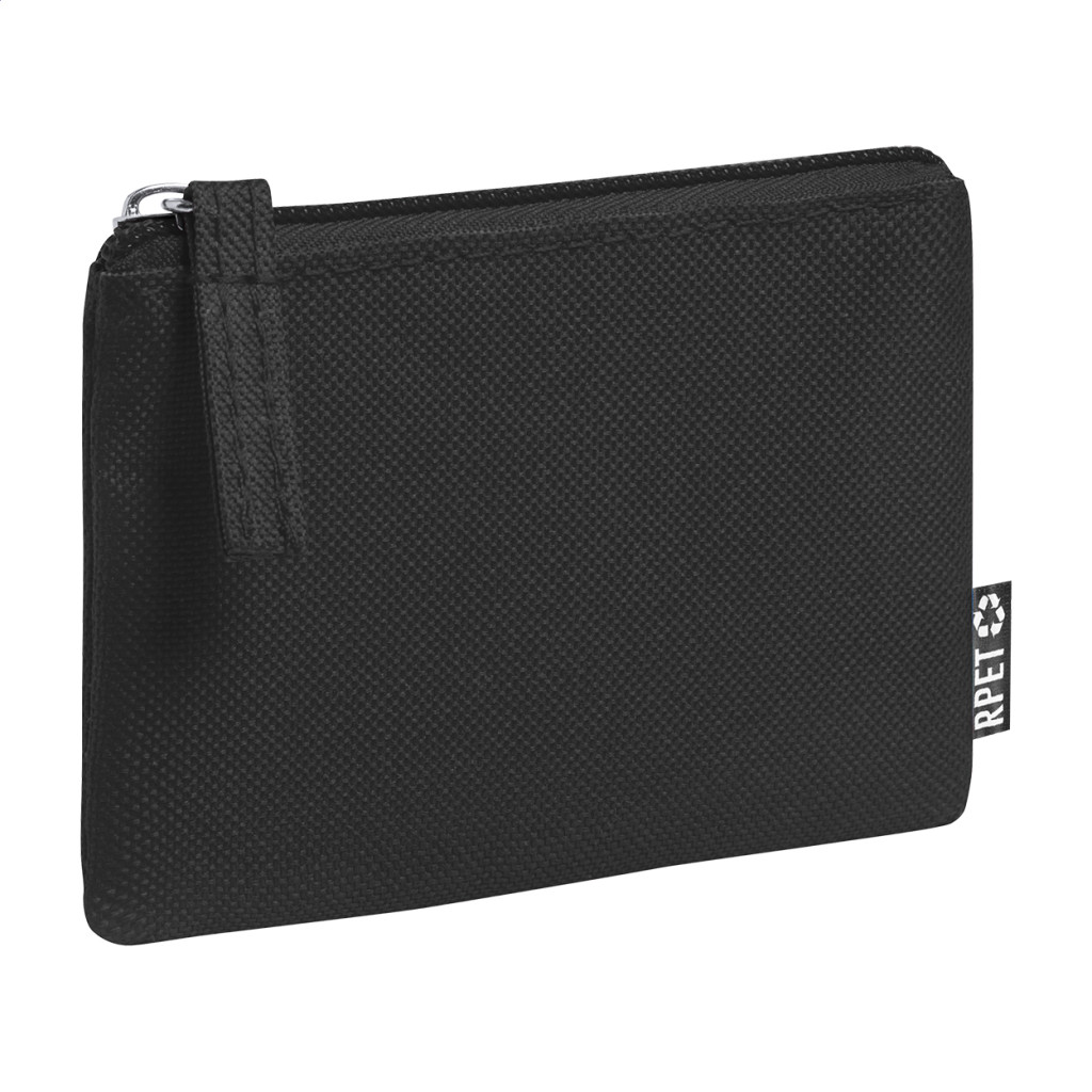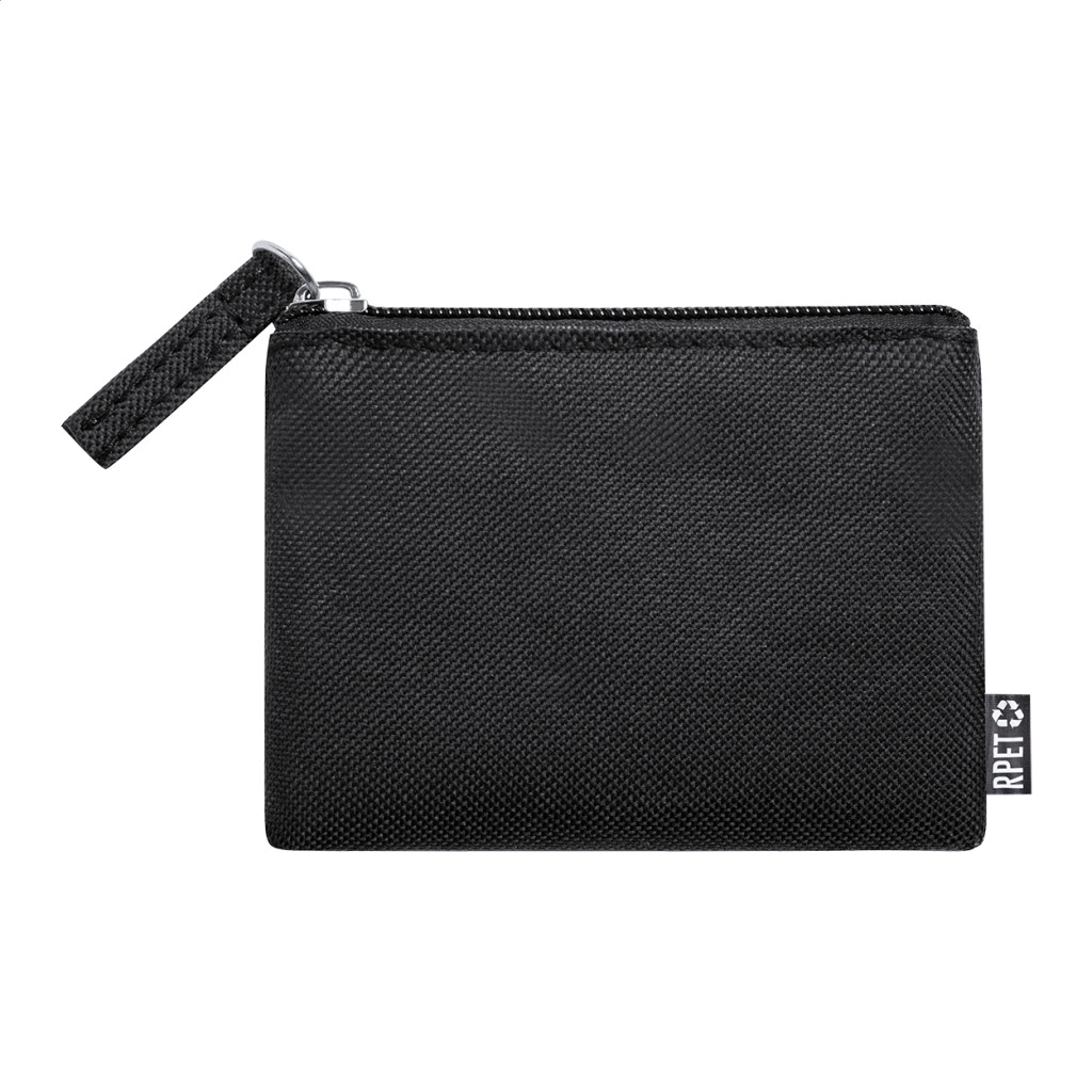 Cipzáras 600D RPET poliészter pénztárca megkülönböztető RPET címkével.