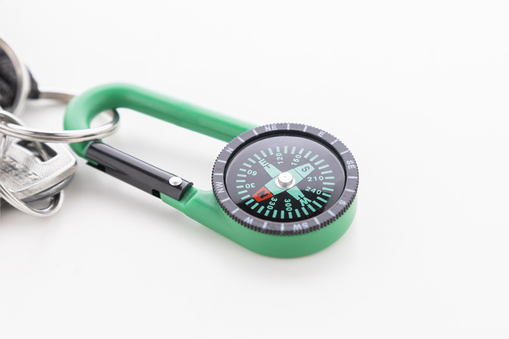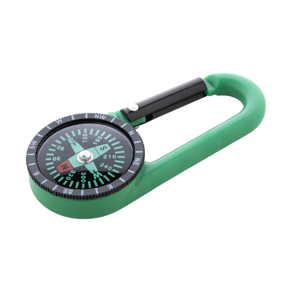 Műanyag karabiner iránytűvel.