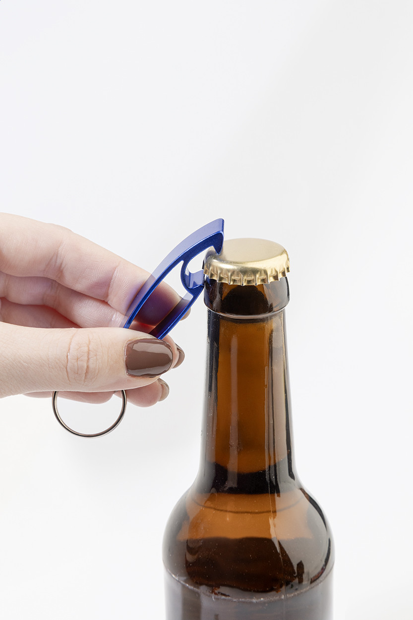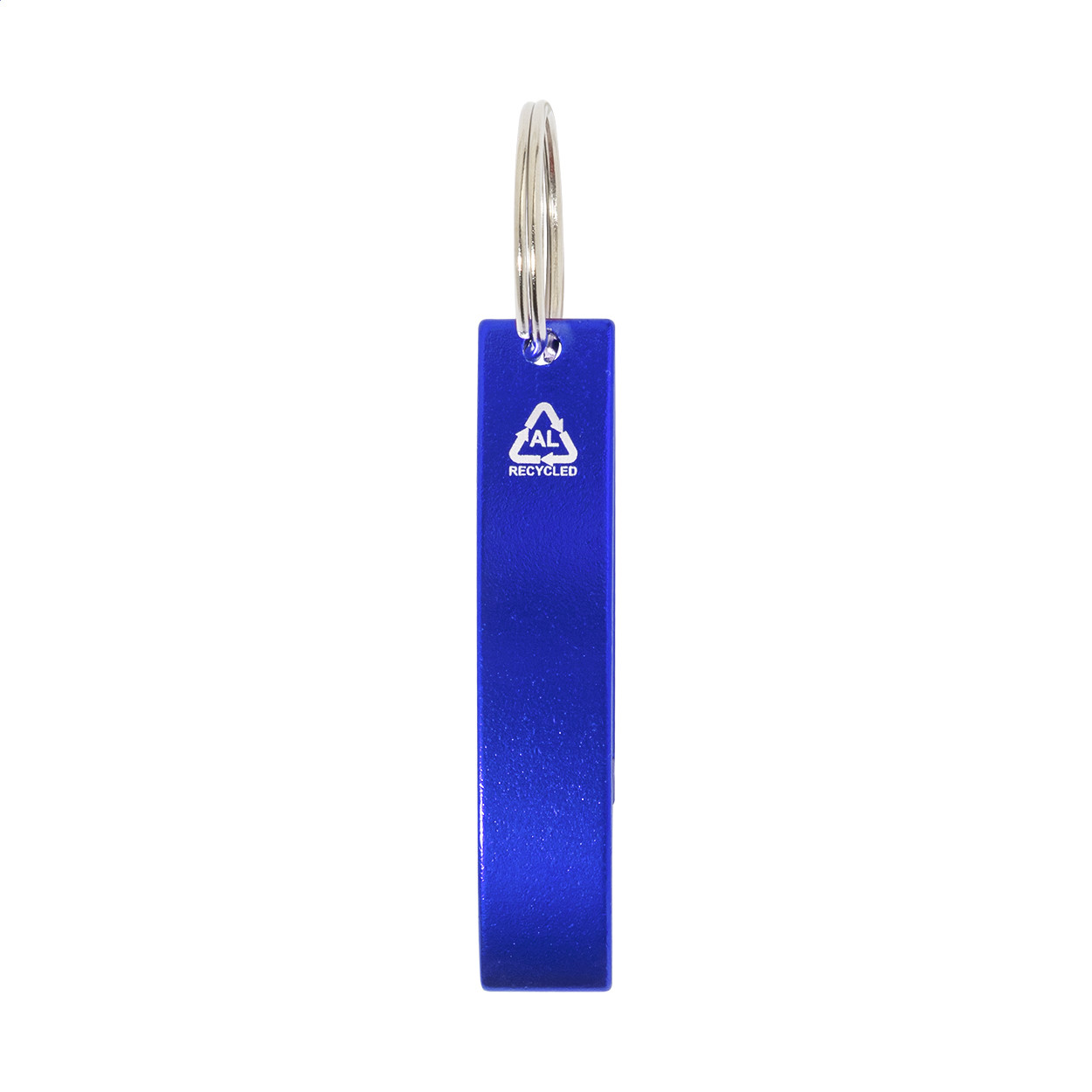 Újrahasznosított alumínium üvegnyitó fém kulcskarikával.