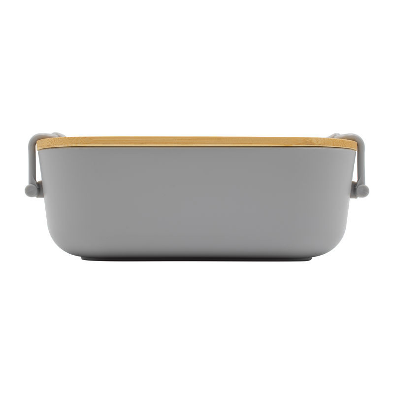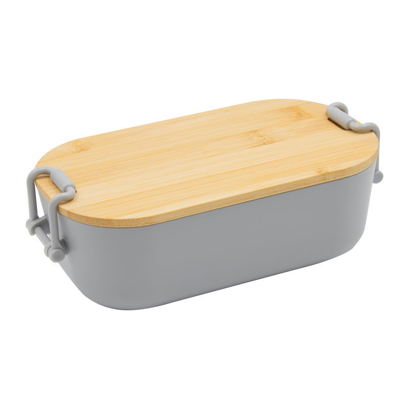 Műanyag ebédhordó doboz bambuszfedéllel és kapcsos zárral, amely biztonságosan zárva tartja az ételt. Az uzsonnás doboz 750 ml űrtartalommal elegendő helyet kínál.