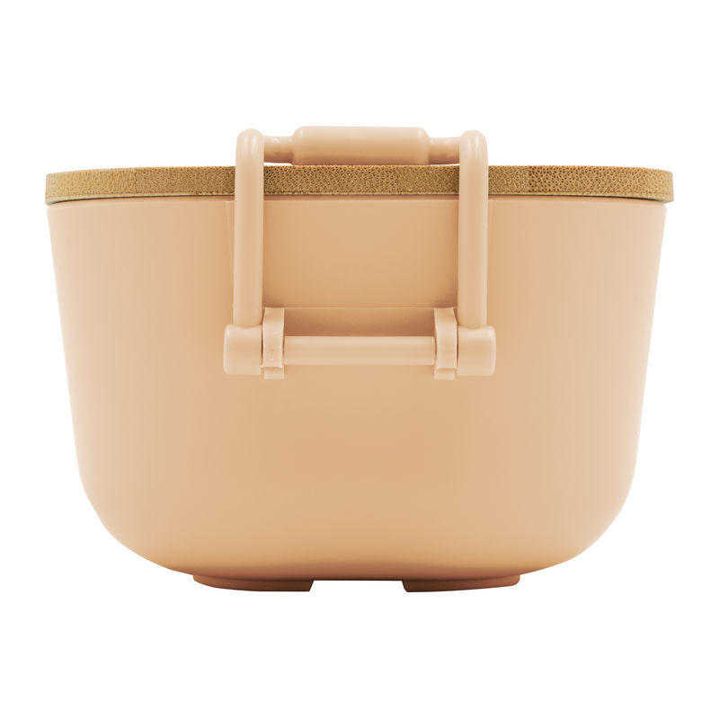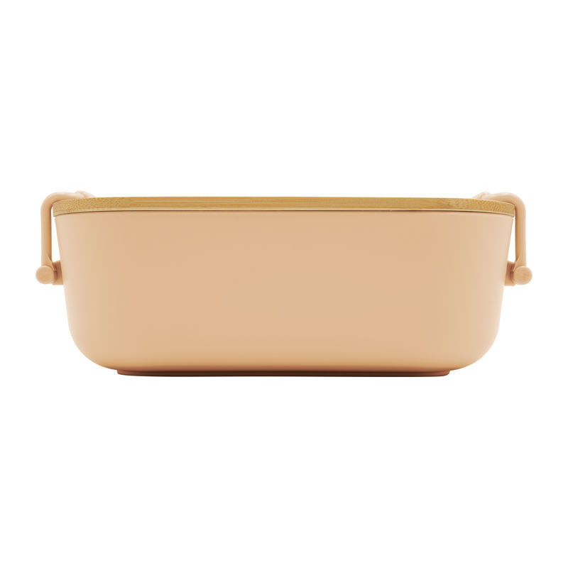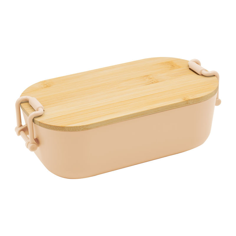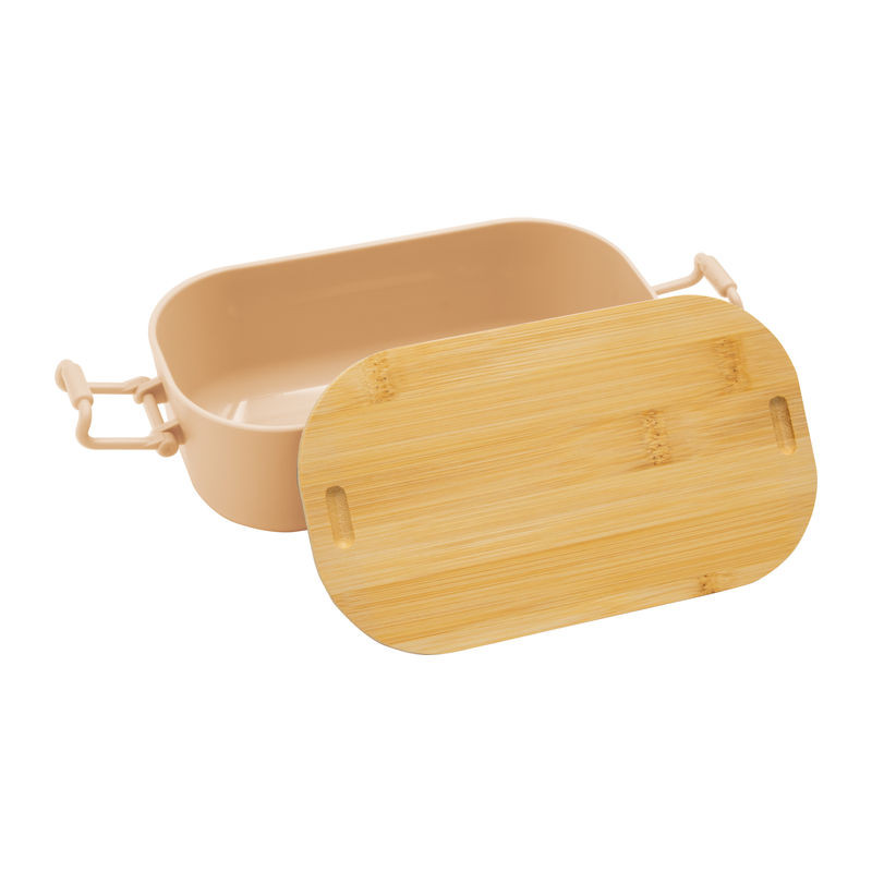 Műanyag ebédhordó doboz bambuszfedéllel és kapcsos zárral, amely biztonságosan zárva tartja az ételt. Az uzsonnás doboz 750 ml űrtartalommal elegendő helyet kínál.