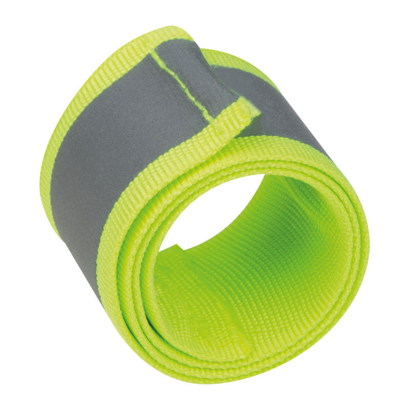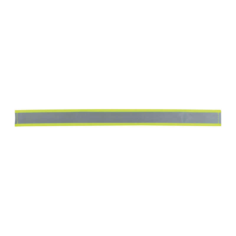 Rugalmas, műanyag, biztonsági fényvisszaverő karpánt, széles és nagy reklámfelülettel.
