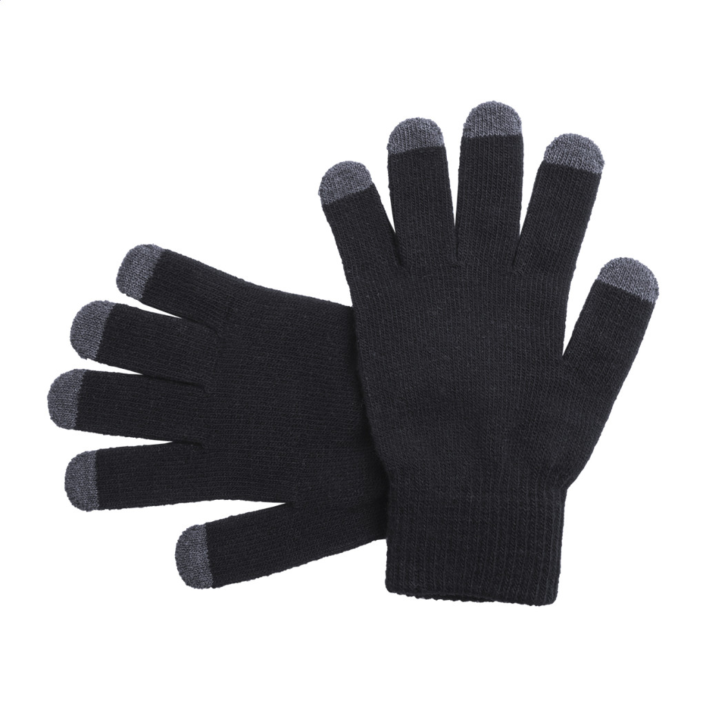 Érintőképernyős kesztyű felnőtt méretben 5 ujján speciális borítással, akril. Egy méretben kapható.