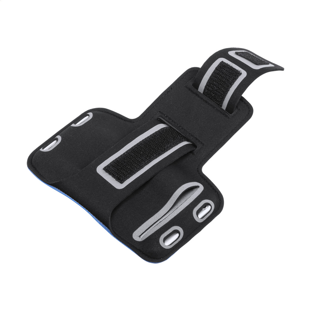 Felkarra rögzíthető PU bőr mobiltelefon-tartó, érintőképernyős ablakkal és fényvisszaverő részekkel. Max. 6 colos kijelző méretű telefonokhoz.