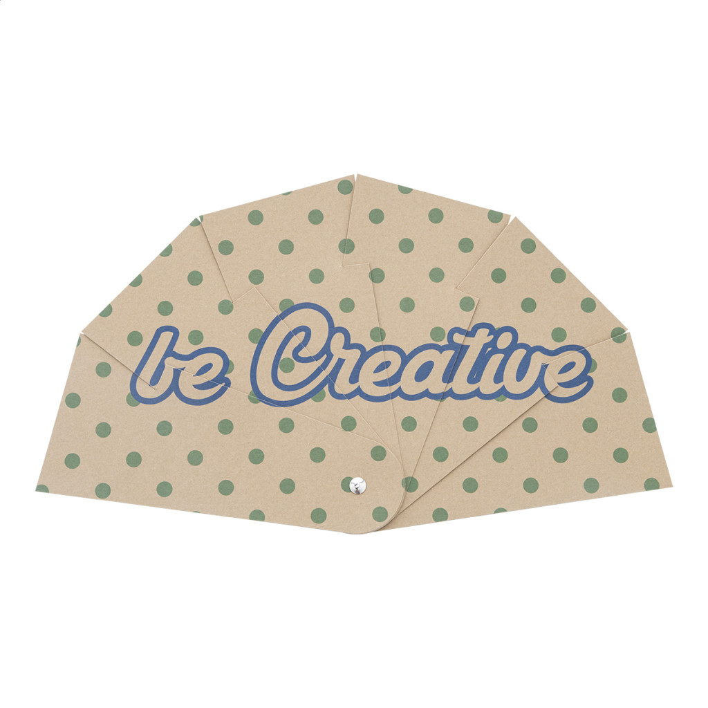 Egyedi gyártású, összehajtható kraft papír legyező full colour grafikával. Az ár tartalmazza a digitális nyomtatást mindkét oldalon. Minimális rendelési mennyiség: 100 db.