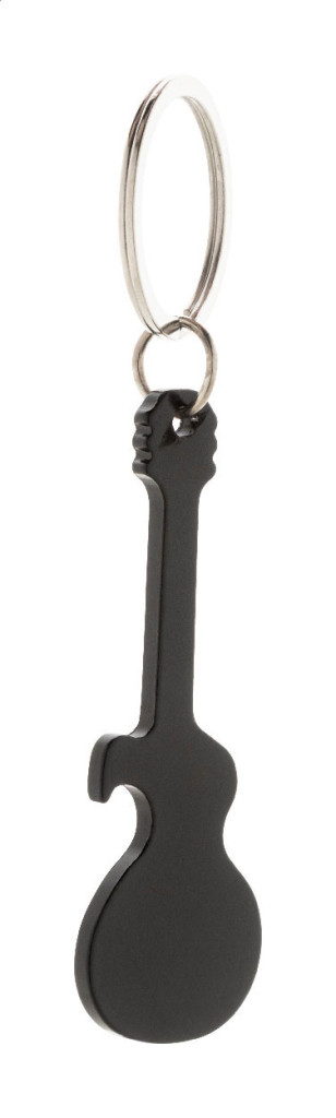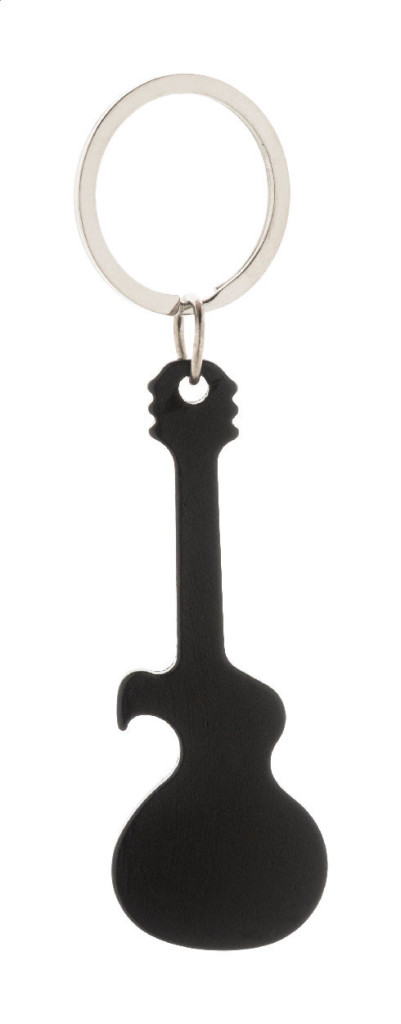 Gitár formájú alumínium kulcstartó, üvegnyitó funkcióval.