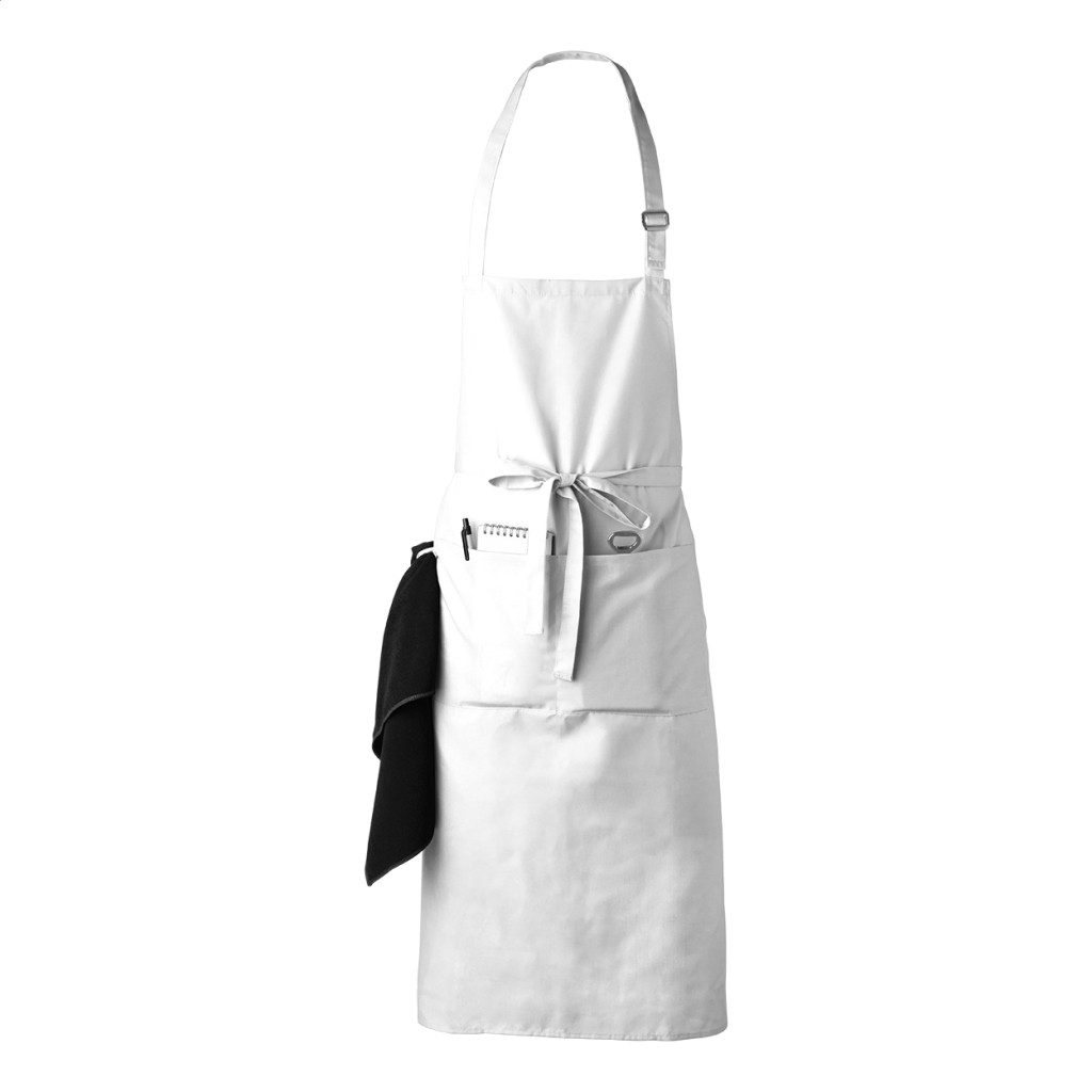 Színes kötény elöl zsebbel. Anyaga: 80% poliészter, 20% pamut.