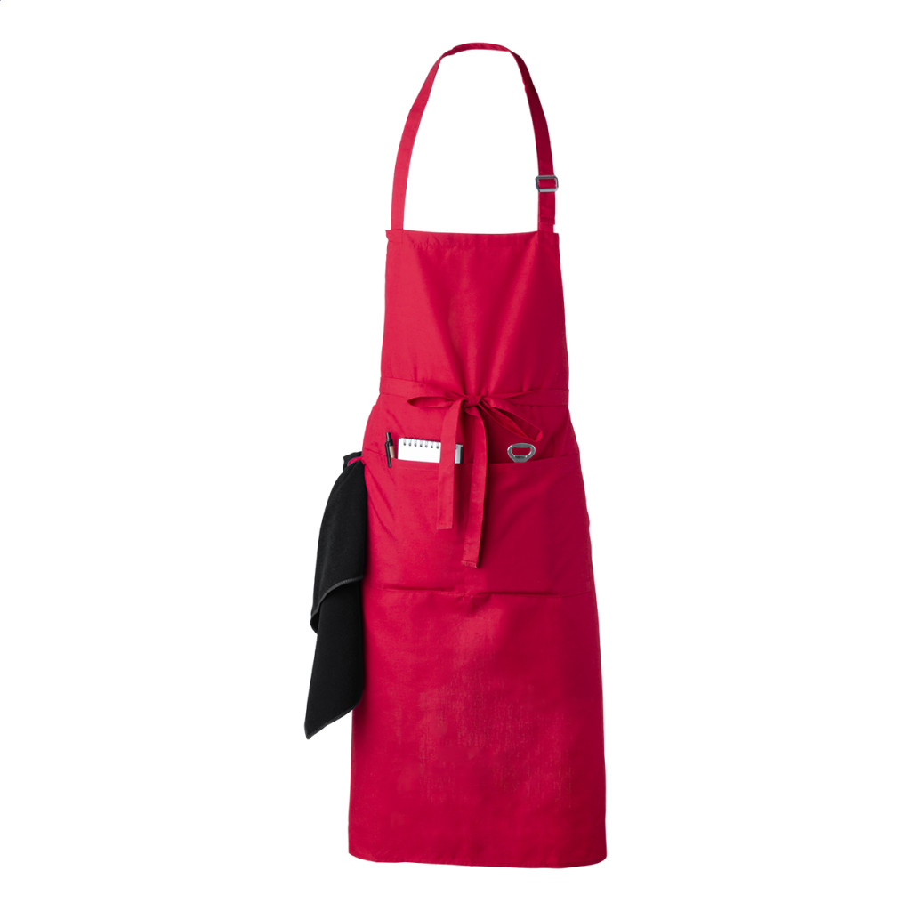 Színes kötény elöl zsebbel. Anyaga: 80% poliészter, 20% pamut.