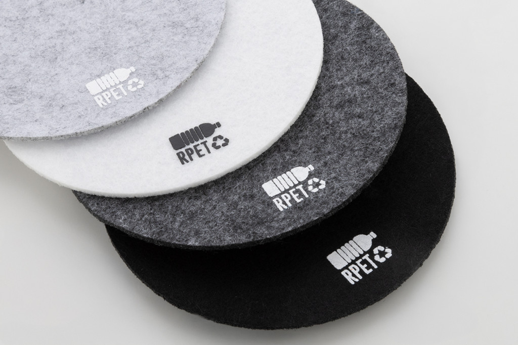 Kerek RPET filc poháralátét. Megkülönböztető RPET jelzéssel.