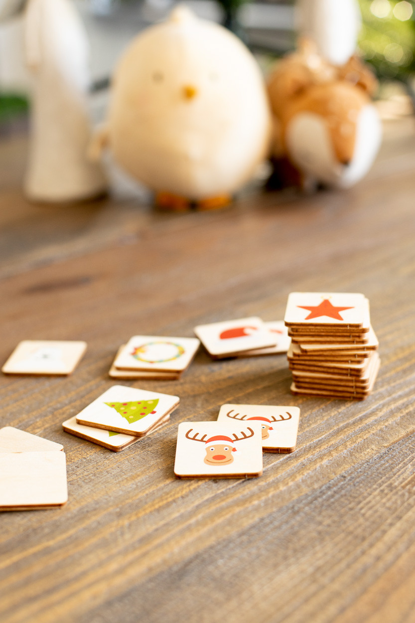 Rétegelt nyírfából készült memóriajáték karácsonyi motívumokkal. 24 lapka (40×40 mm). Az ár tartalmazza az emblémázás költségét, azonos full-colour nyomtatást az összes lapka hátoldalán. Minimális rendelési mennyiség: 50 db.